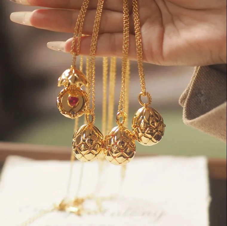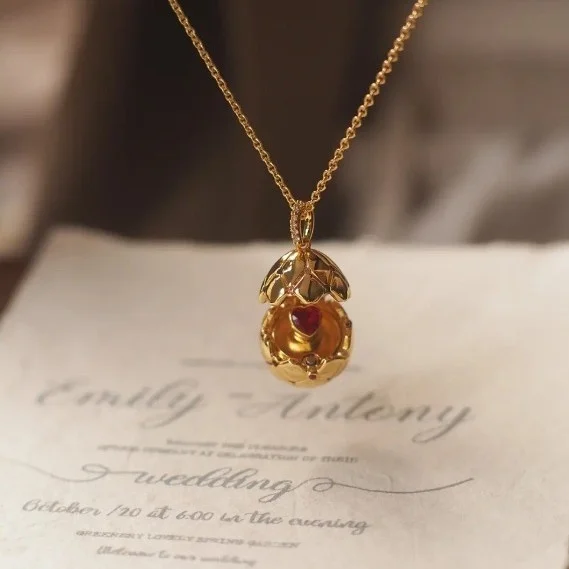 Vintage Fashion Elegant Small Pendant Necklace Openable Easter Egg Love Zircon High Color Value Clavicle Chain Trendy Geometric