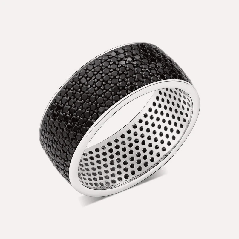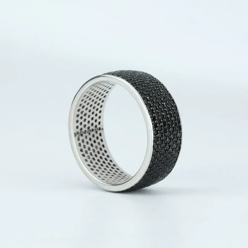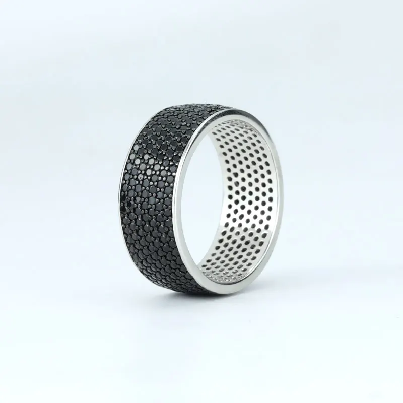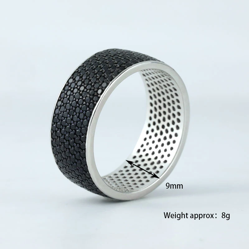 Keiyue Wholesale 925 Sterling Silver Ring Black CZ Fine Jewelry Rings for Men With Tungsten for Engagement Gift Party Inlay