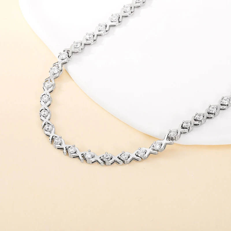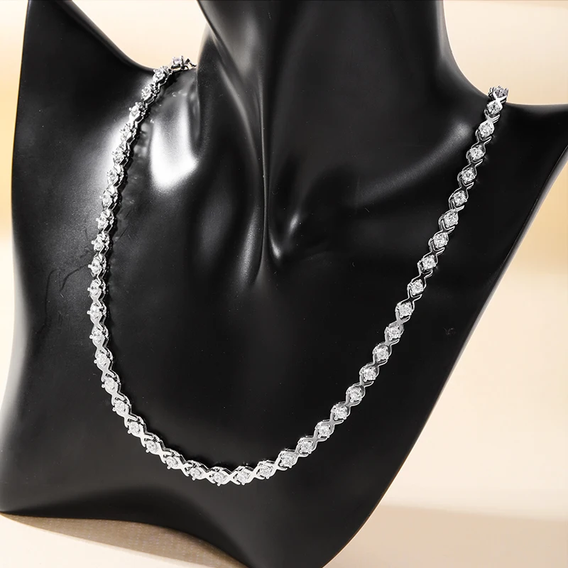 Keiyue Unisex High Quality 925 Sterling Silver Cubic Zirconia Tennis Chain Necklace Fashionable Design Silver for Weddings Gift