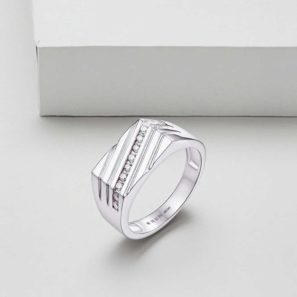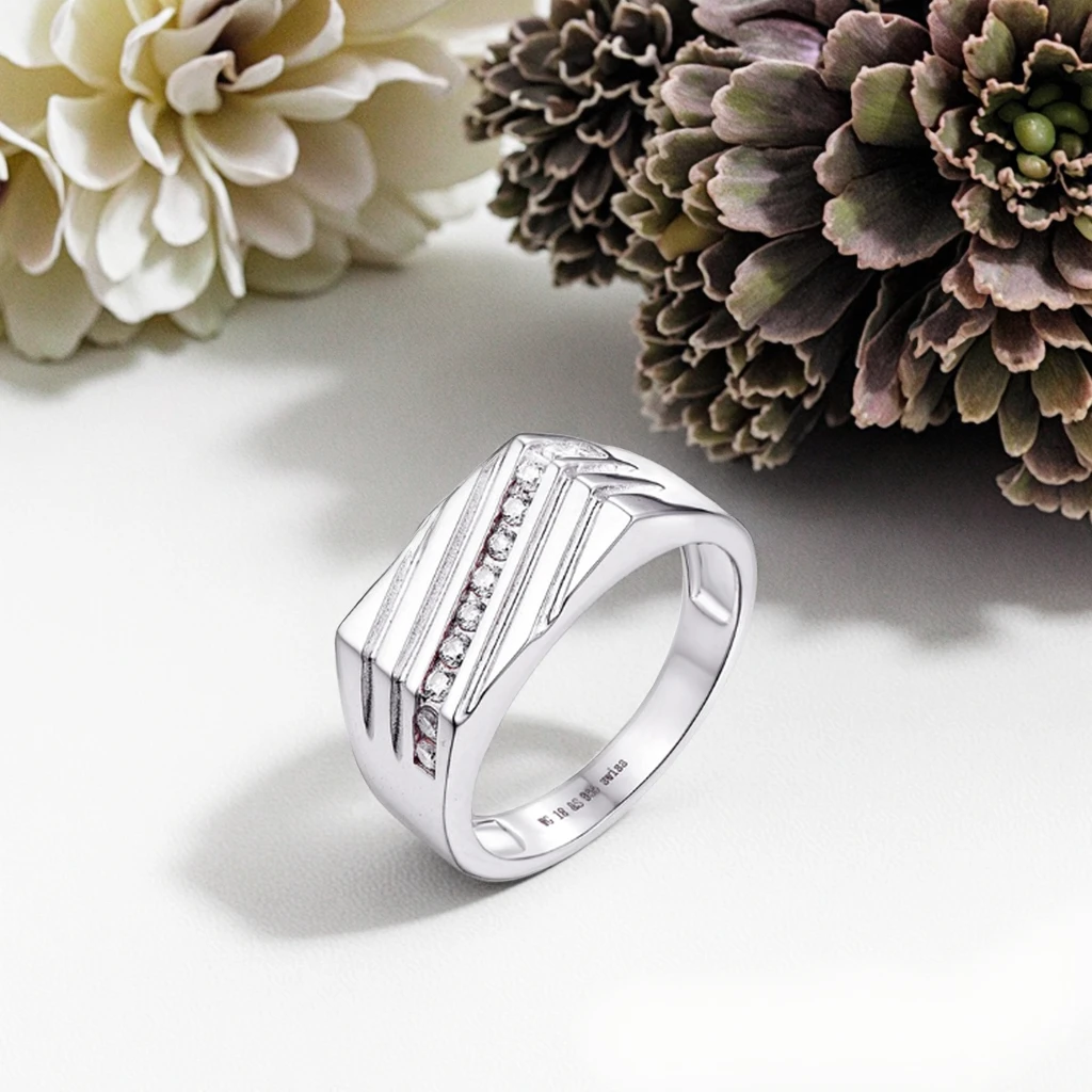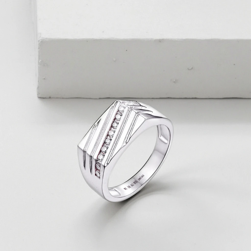 Keiyue Fashion Silver Plated Twill Spinner Men's Ring with Claw Setting