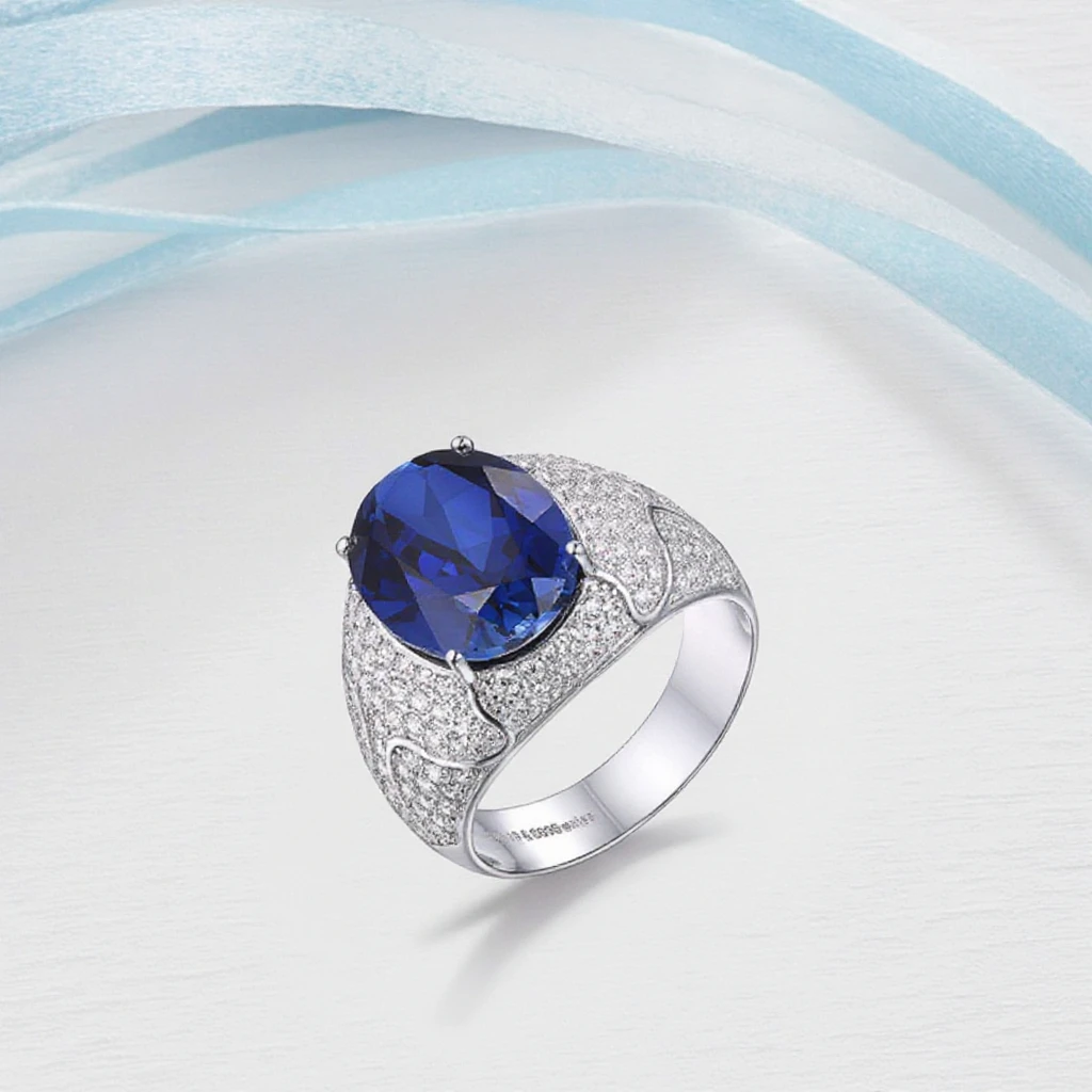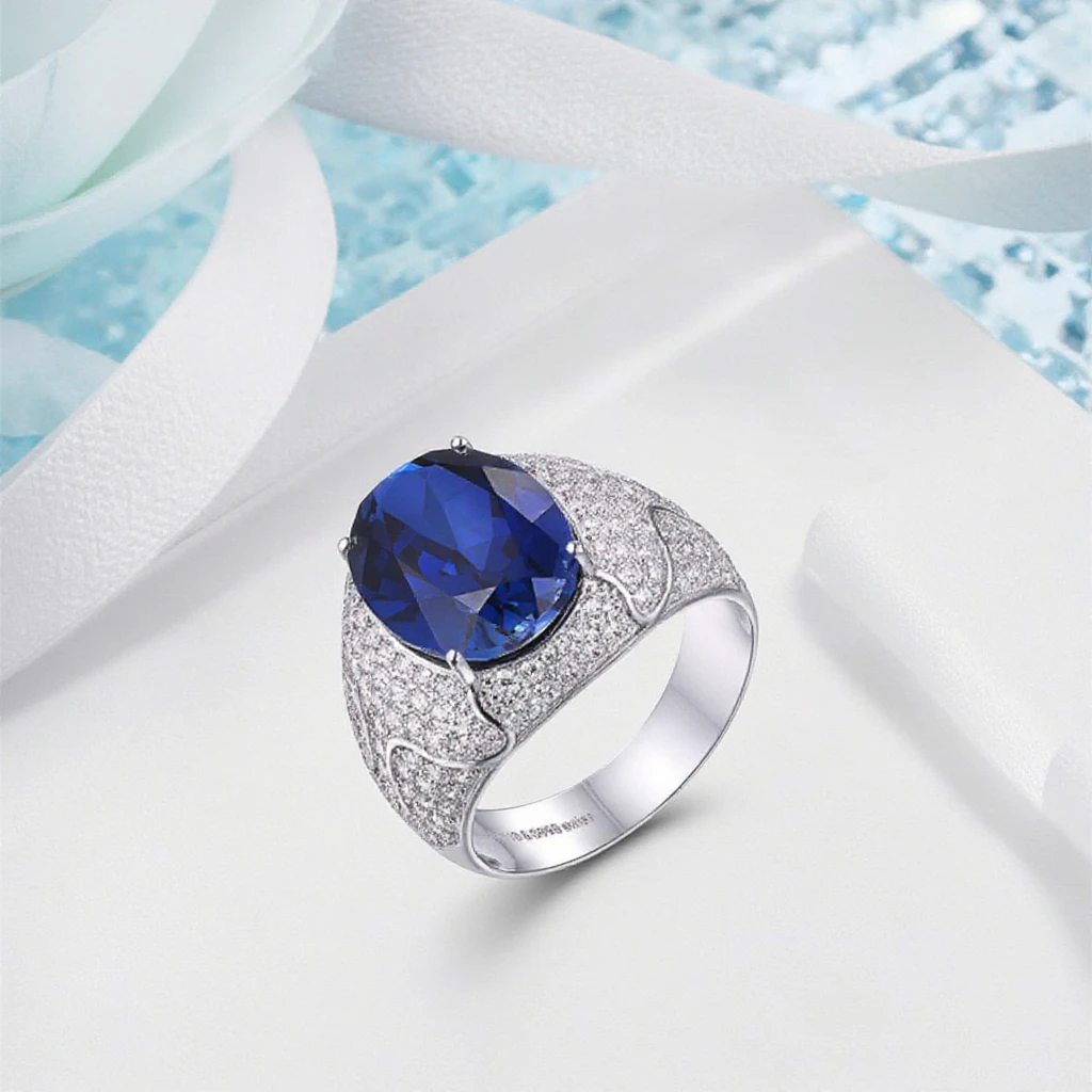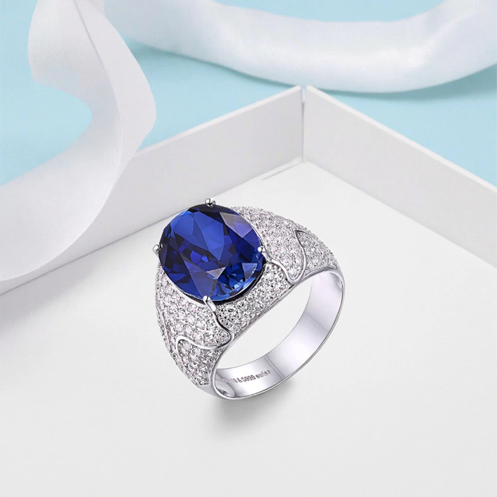 Keiyue Men Natural Blue Sapphire Precious Stone Rings with Cz,oval Jewel Cut Blue Stone Ring