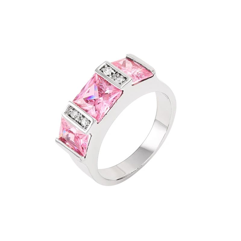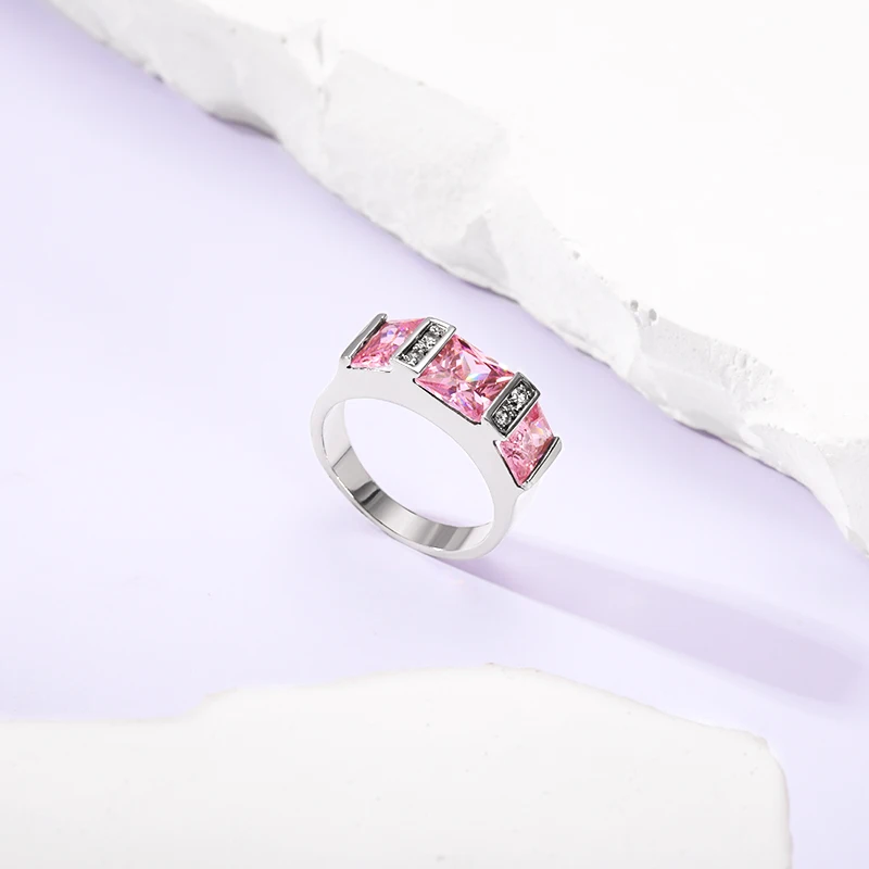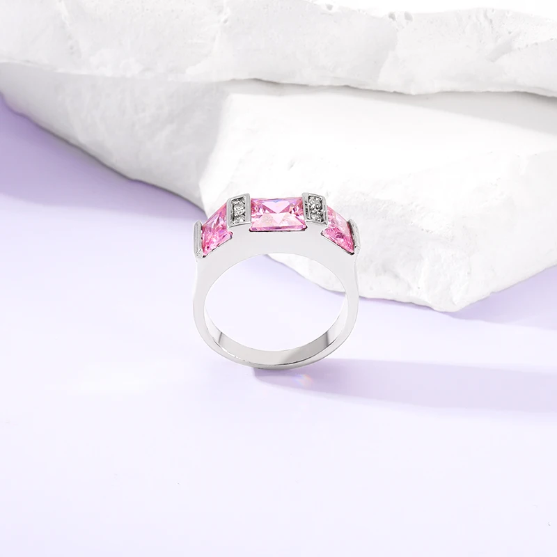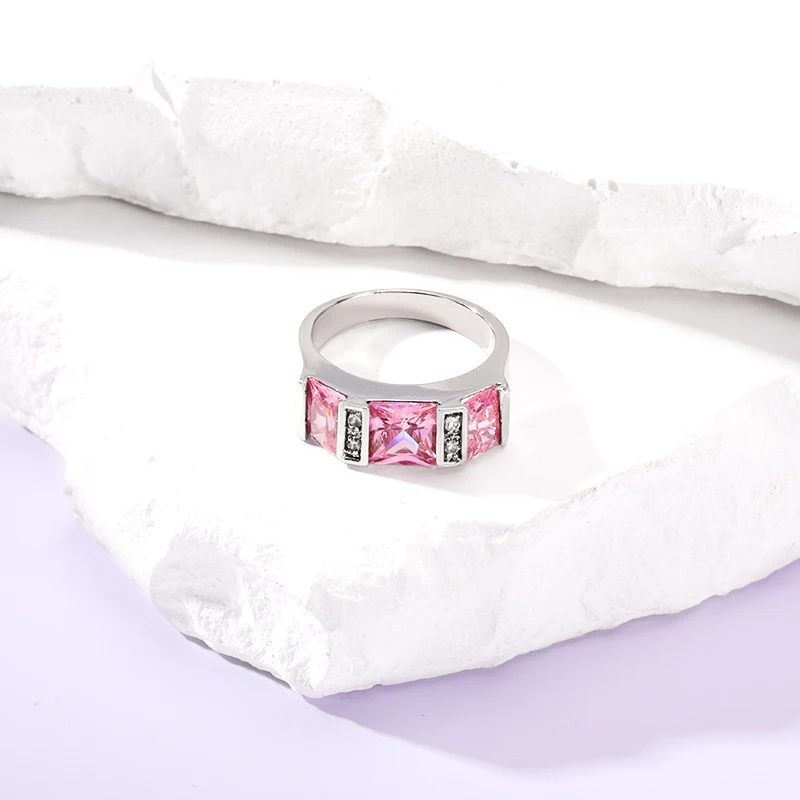 Keiyue 2026 Unique Women's Silver Ring Fashion Copper Plated Three Pink Cubic Zirconia Inspired Jewelry for Party OCCasion