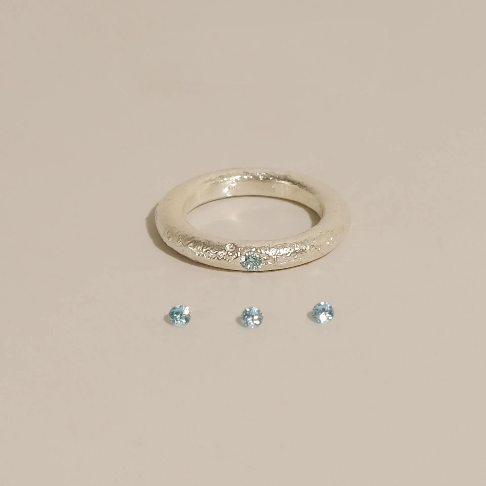 S925 Sterling Silver Adjustable Ring Womens Simple Style Niche Design Distinctive Frosted Texture Inlay Finger Ring Aquamarine