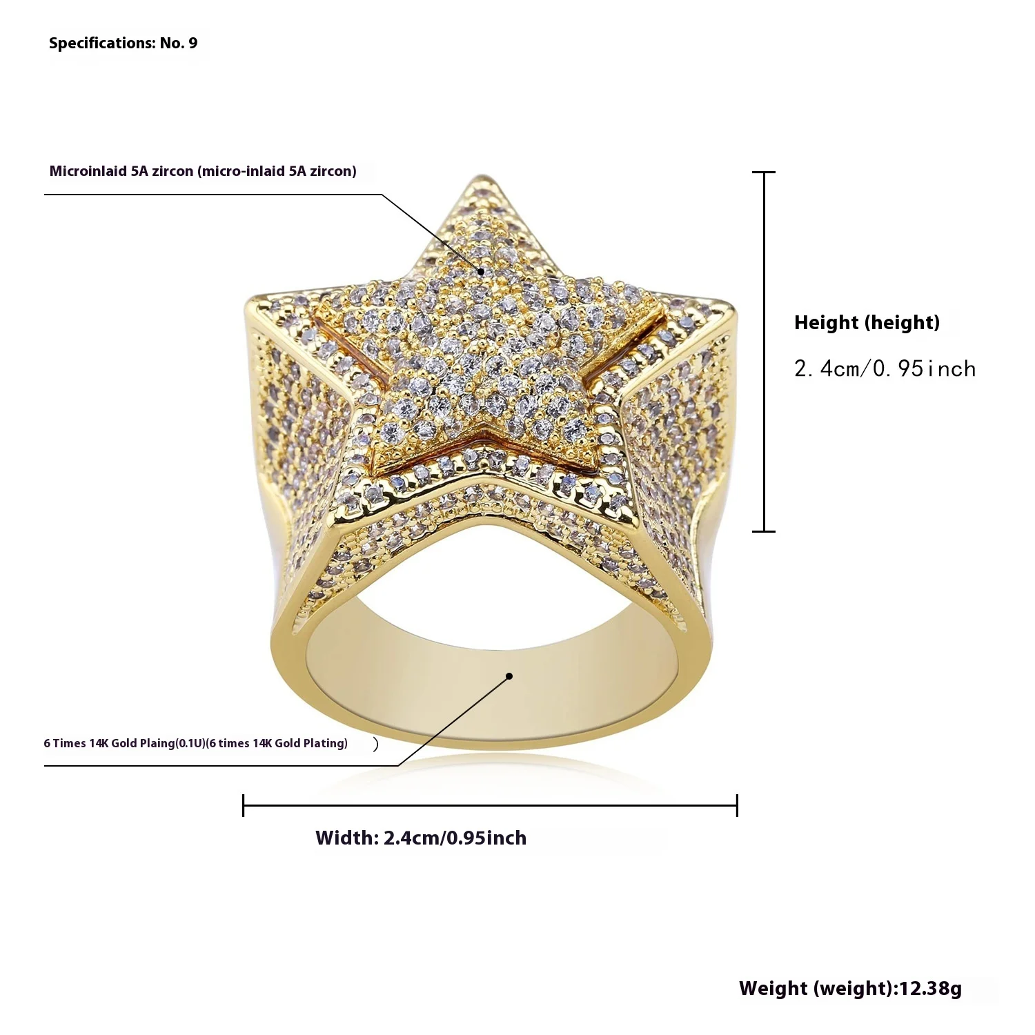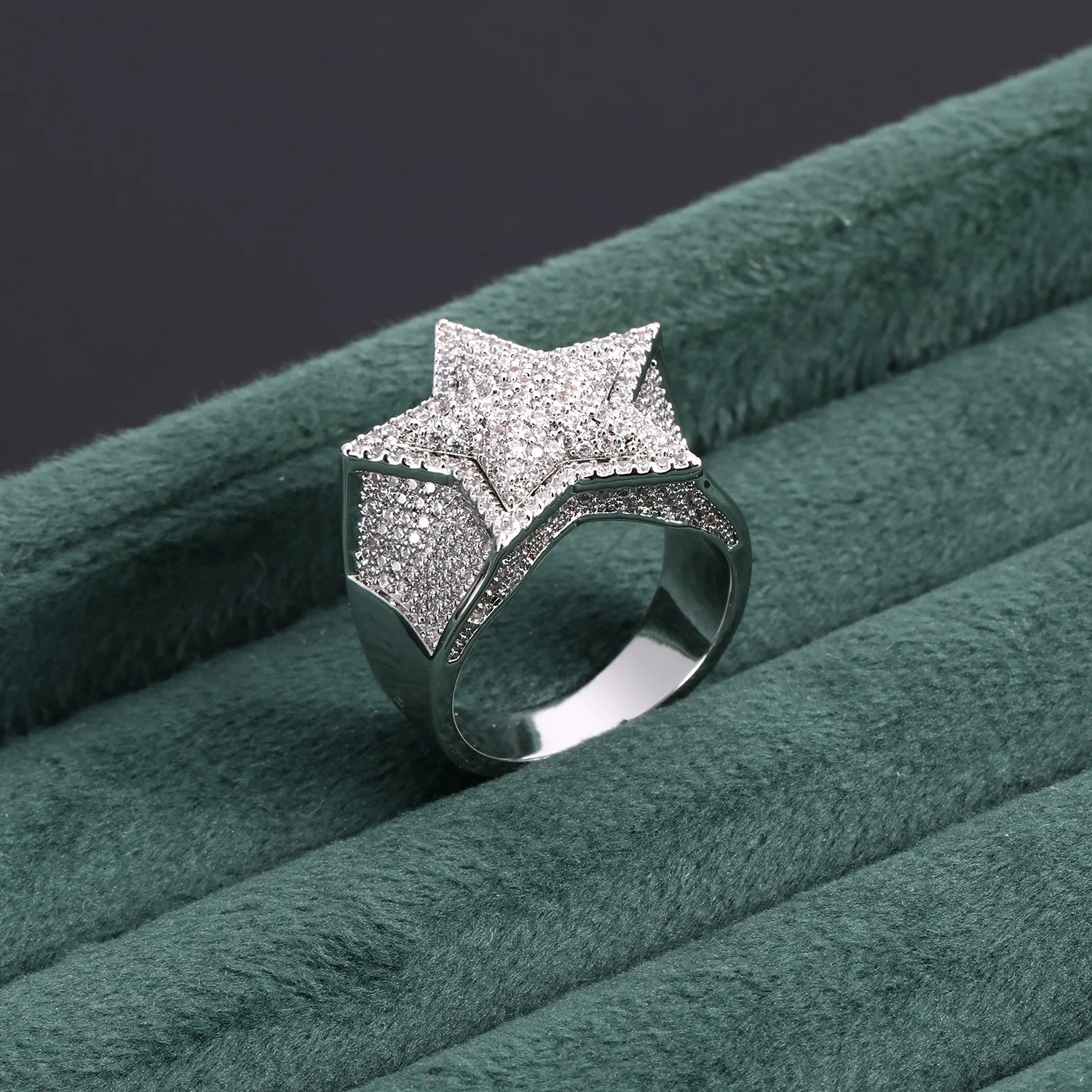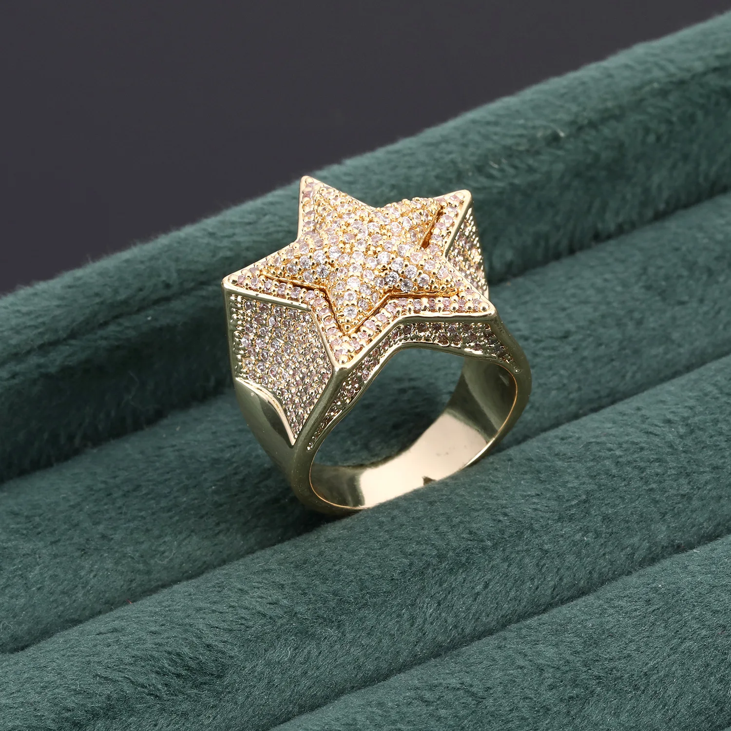 Europe United States Cross Border Accessory Trend Hip Hop Full Diamond Three Dimensional Five Pointed Star Double Layer Ring
