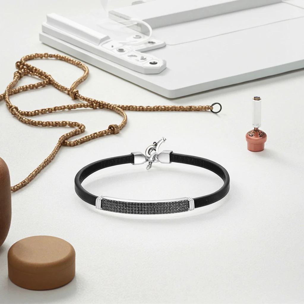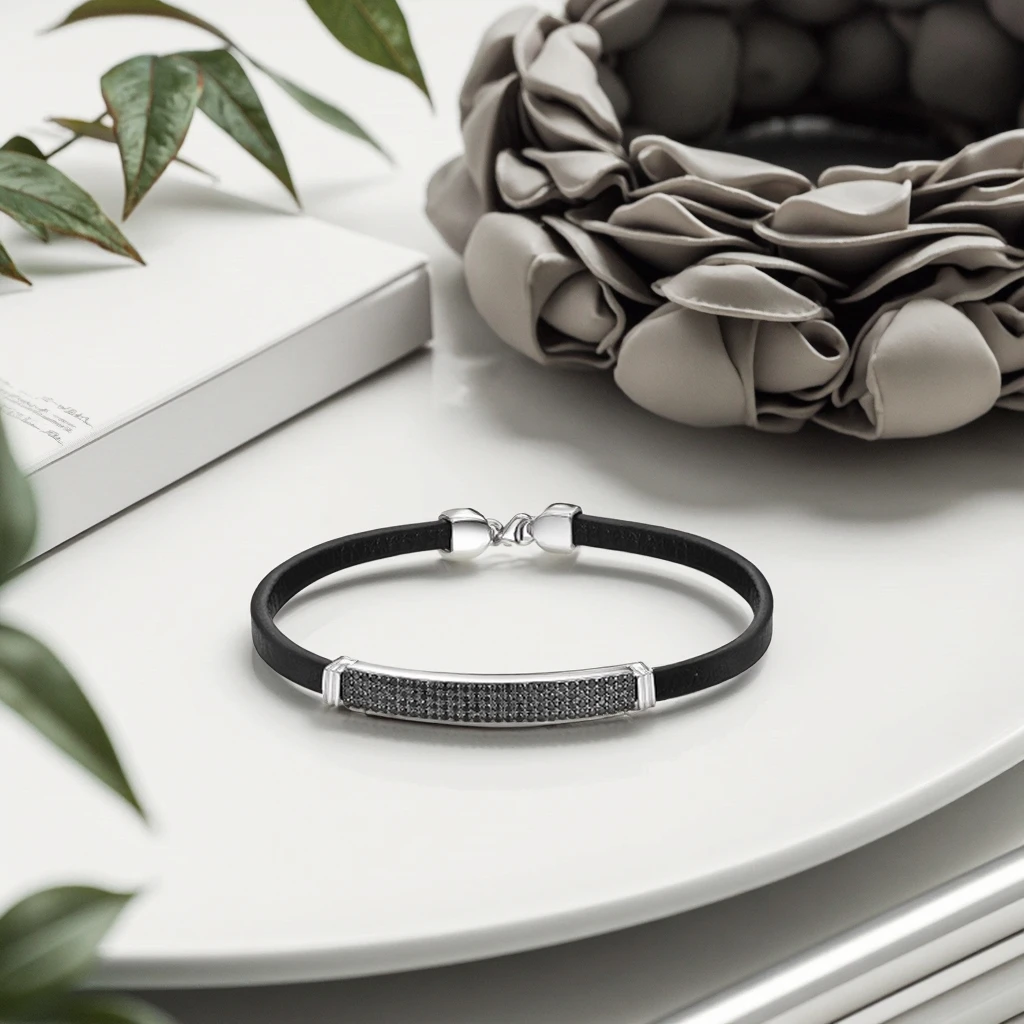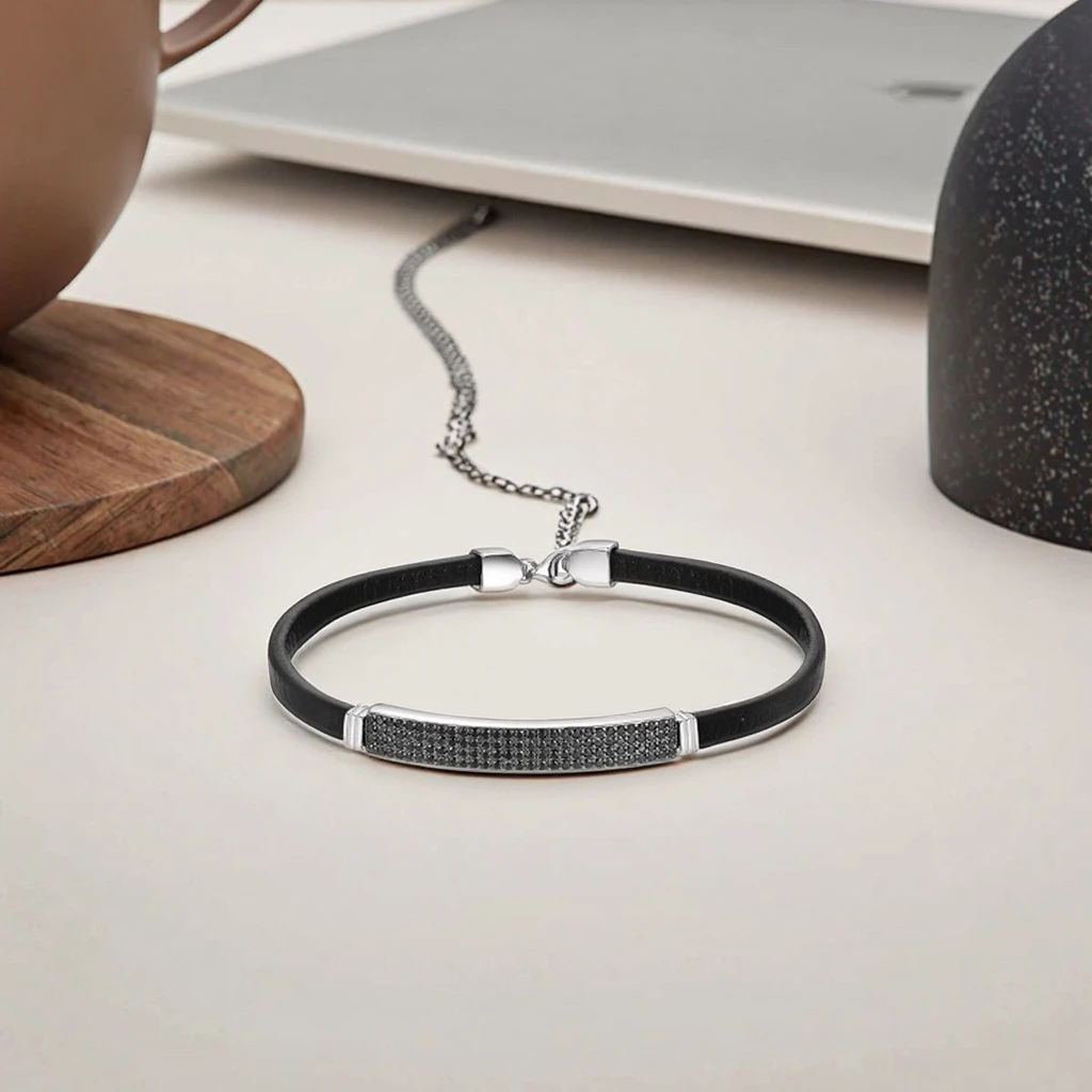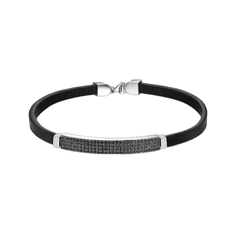 Keiyue Handmade Black CZ Stone Pave 925 Silver/Copper/Brass Bracelet with Clasp Nickel-Free for Men