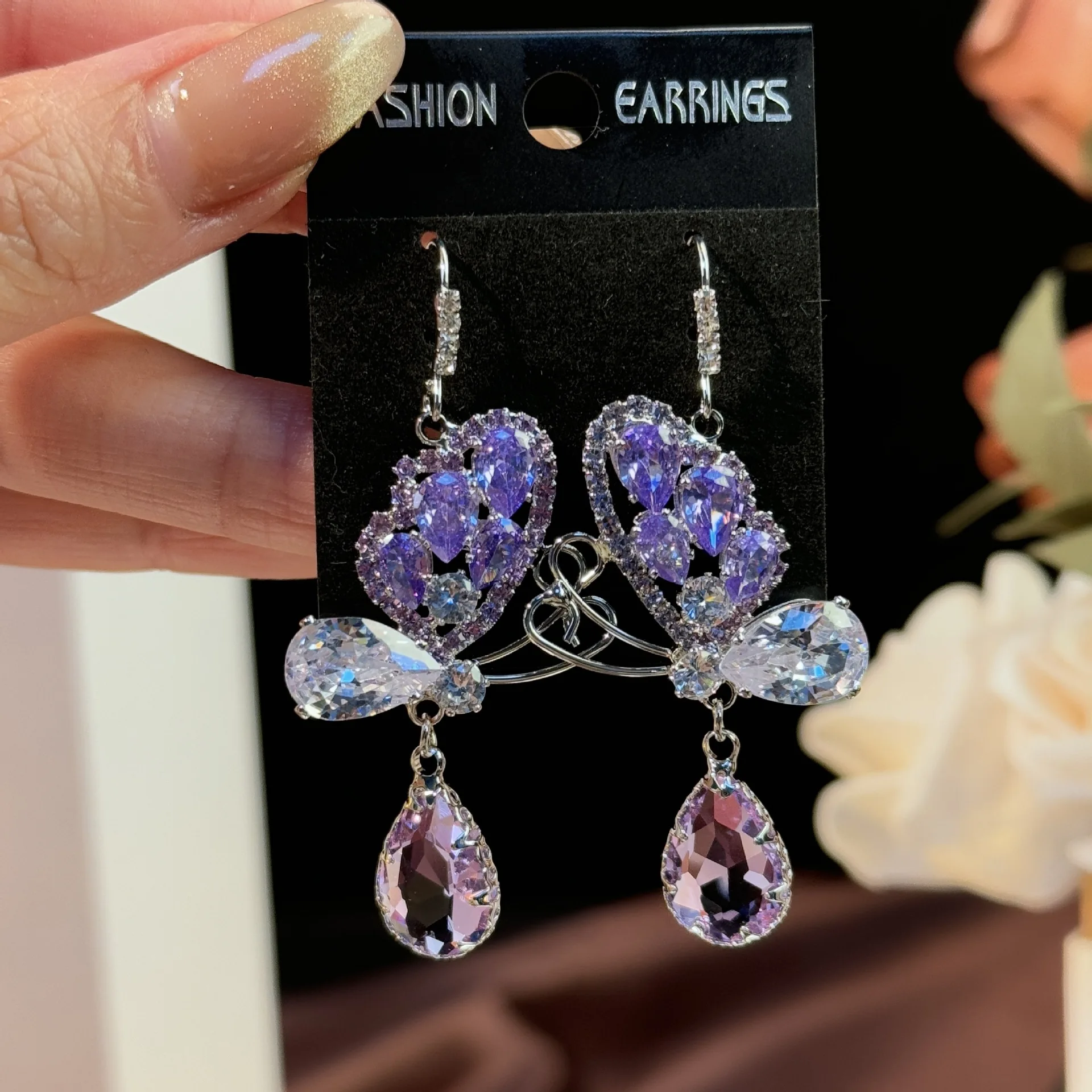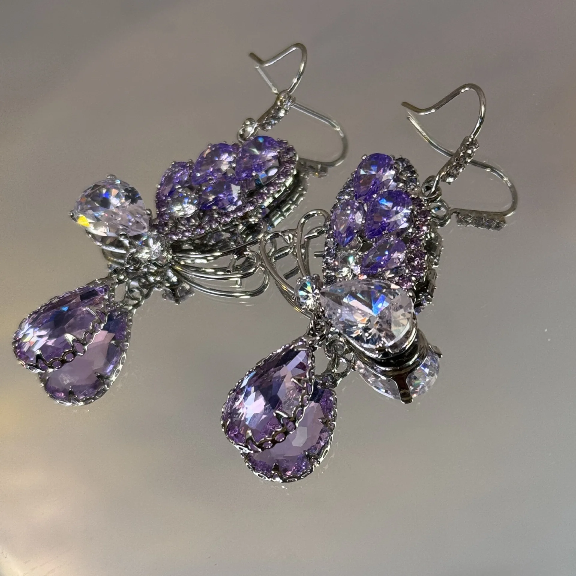 2026 Super Fairy Dream Purple Long Butterfly Earrings Ear Hook High-End Light Luxury Pendant Trendy Alloy for Women for Gifts