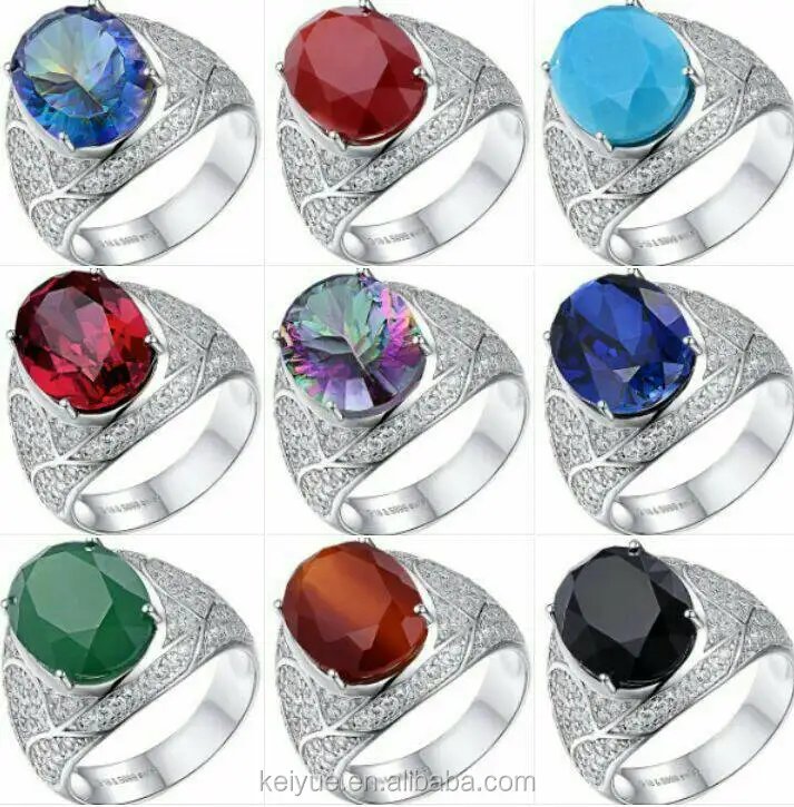 925 Sterling Silver Finger Rings for Men Fashionable Big Agate Gemstone Multicolor Stone for Weddings Parties Designed Saudi
