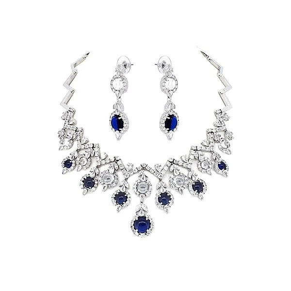 African Costume Jewelry Necklace Earring Sets with Blue Sapphire and White Zircon Stone for Parties Engagements or Gifts