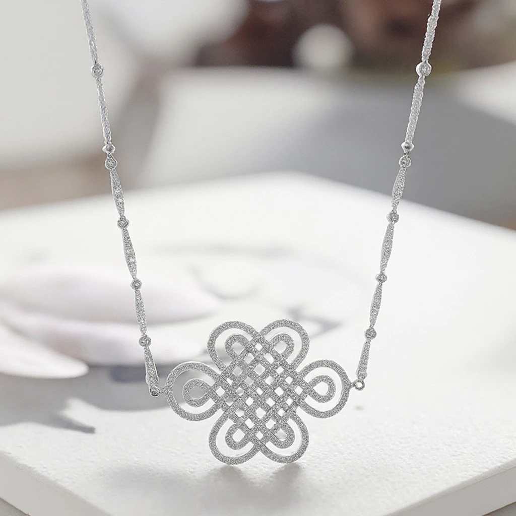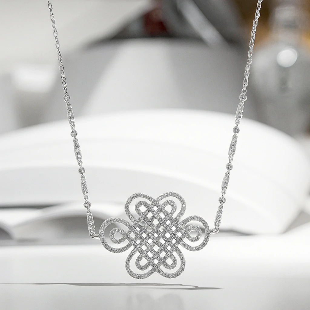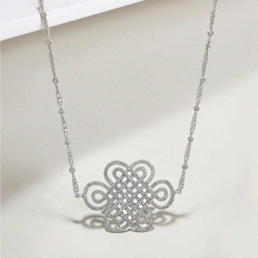 Keiyue Traditional Culture Sterling Silver Pendant Chinese Knot Design Enduring Love Zircon Stone for Engagement
