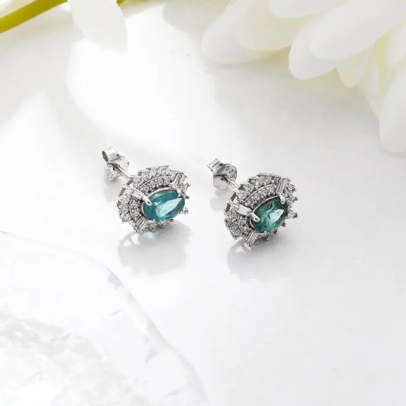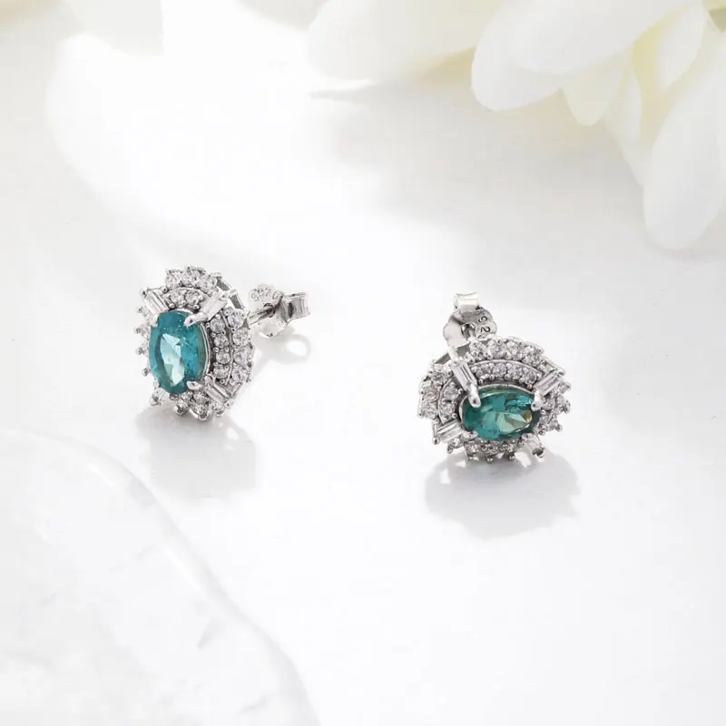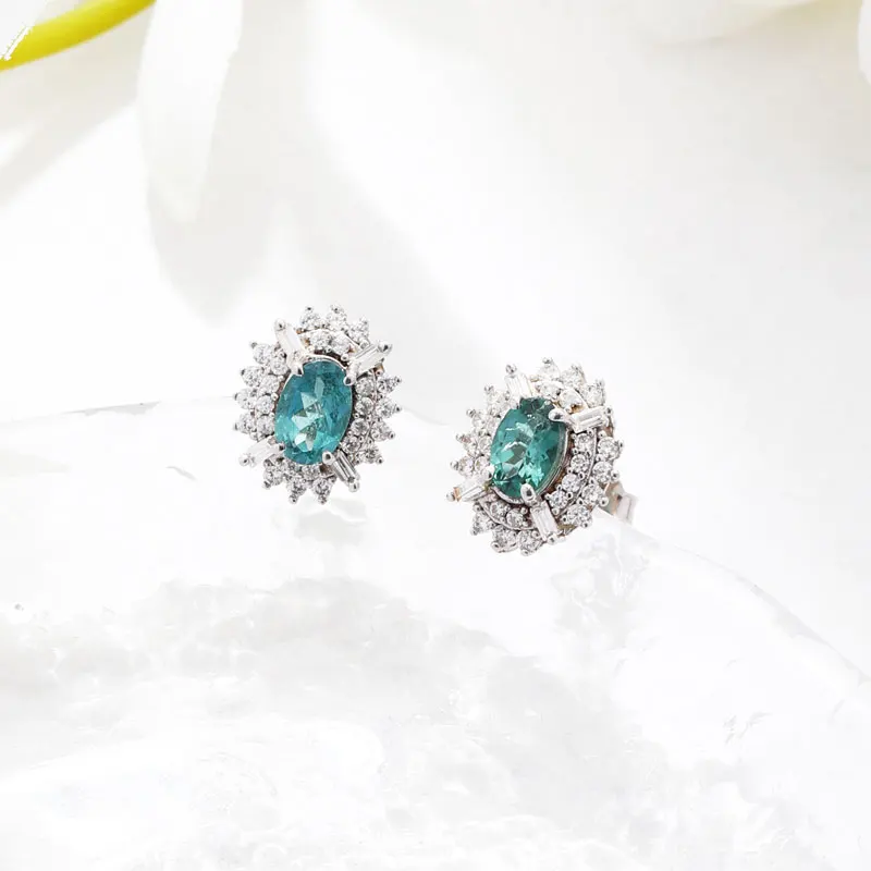 Keiyue Luxury Classic Aquamarine Zircon and White Zircon Hoop Earrings Trendy Party Wedding Gift Rhodium Plated for Women