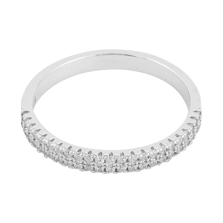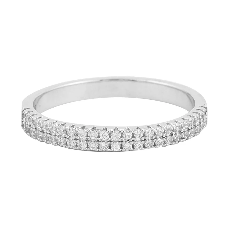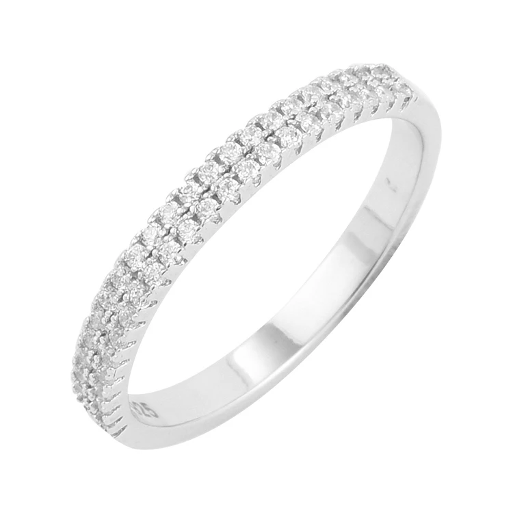 Keiyue 2026 Half Eternity Ring Pave Diamond CZ and Plain Cubic Zirconia Fashionable 925 Silver Band for Weddings and Parties
