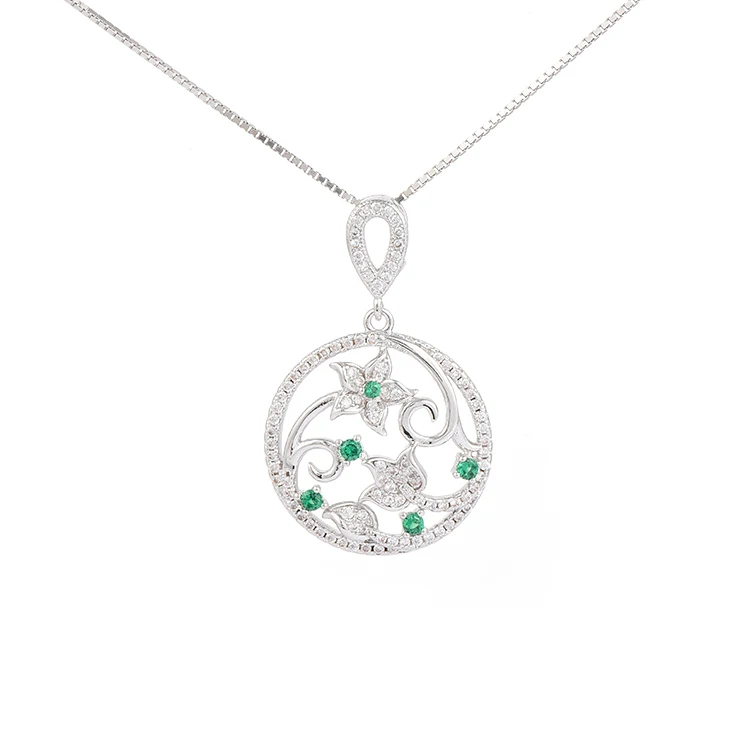Keiyue Factory Direct 925 Silver Copper Custom Green Spinel Round Pendant for Women Casual Style