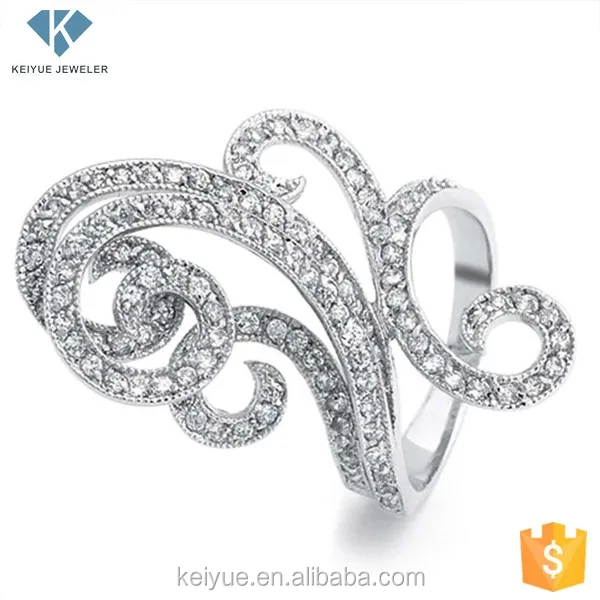 Keiyue Latest Women's Sterling Silver Rings White CZ Stone Models with Fancy Flower Design Classic Styles for Party Anniversary
