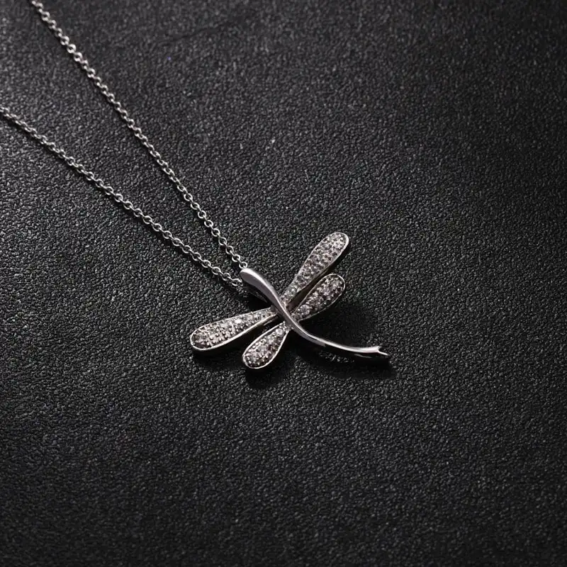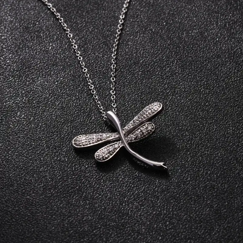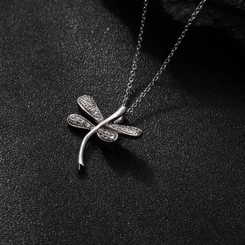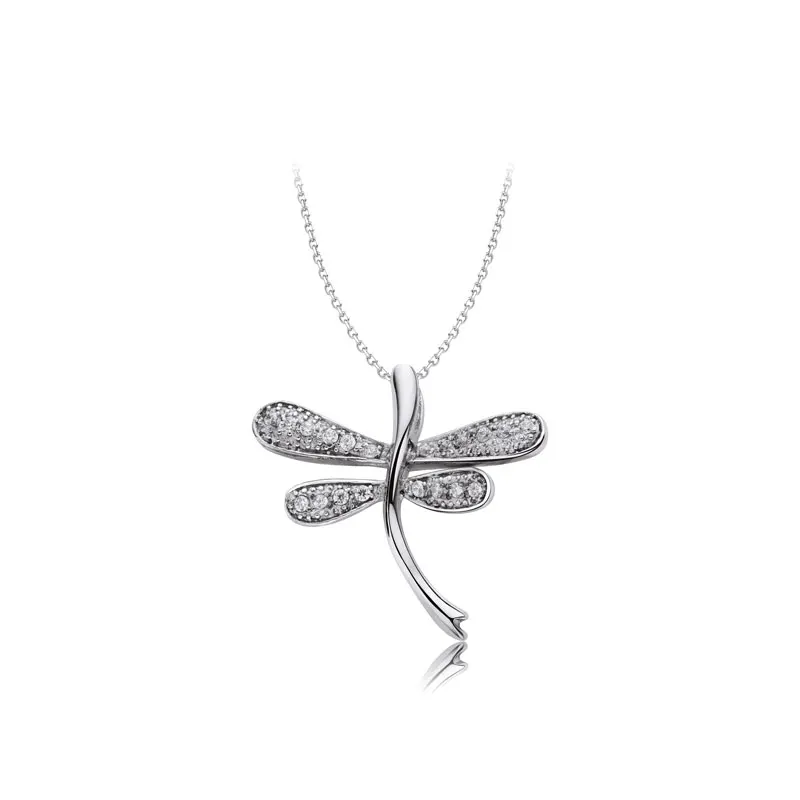 Keiyue 925 Sterling Silver Dragonfly Pendant Necklace Fashion Jewelry with Zircon Stone for Weddings
