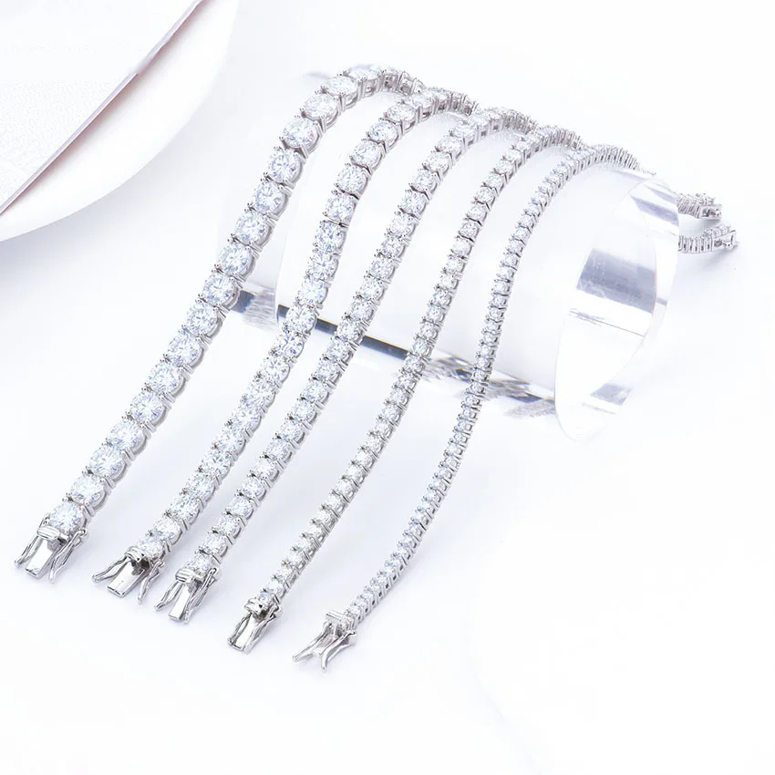 Tennis Chain 2-6mm Full Set Moissanite Bracelet S925 Silver Plated Light Luxury Design for Advanced Sense for Both