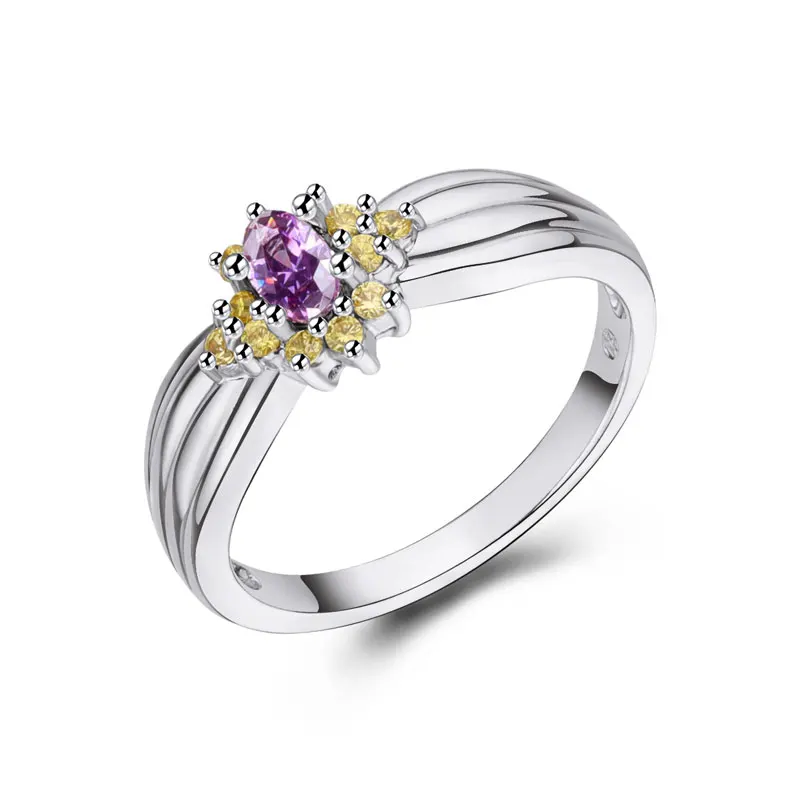 Keiyue Shiny White 925 Sterling Silver Ring for Women Antique Designs with Square Platinum Flower for Weddings