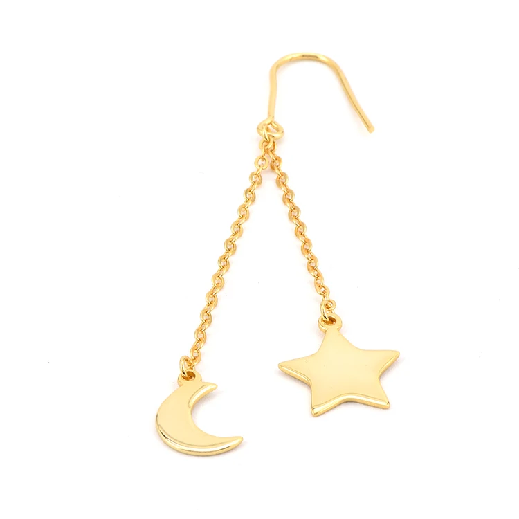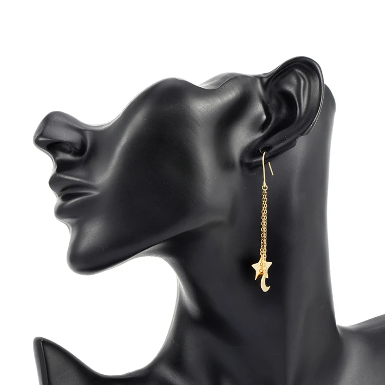 Keiyue Factory Direct 925 Sterling Silver Copper Star Moon Gold Plated Long Dangle Earrings for Weddings Parties Coral