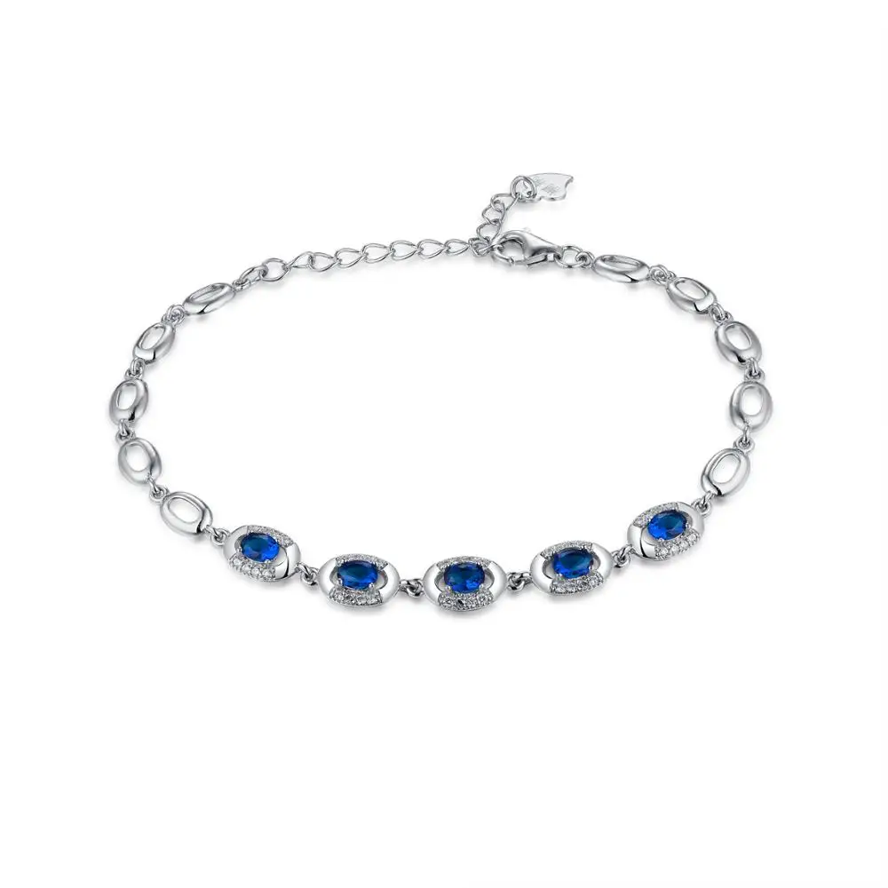 Keiyue Women's 925 Sterling Silver Tennis Bracelet with Blue Zircon Stone Natural Stone Accessories for Party and Gift Jewelry