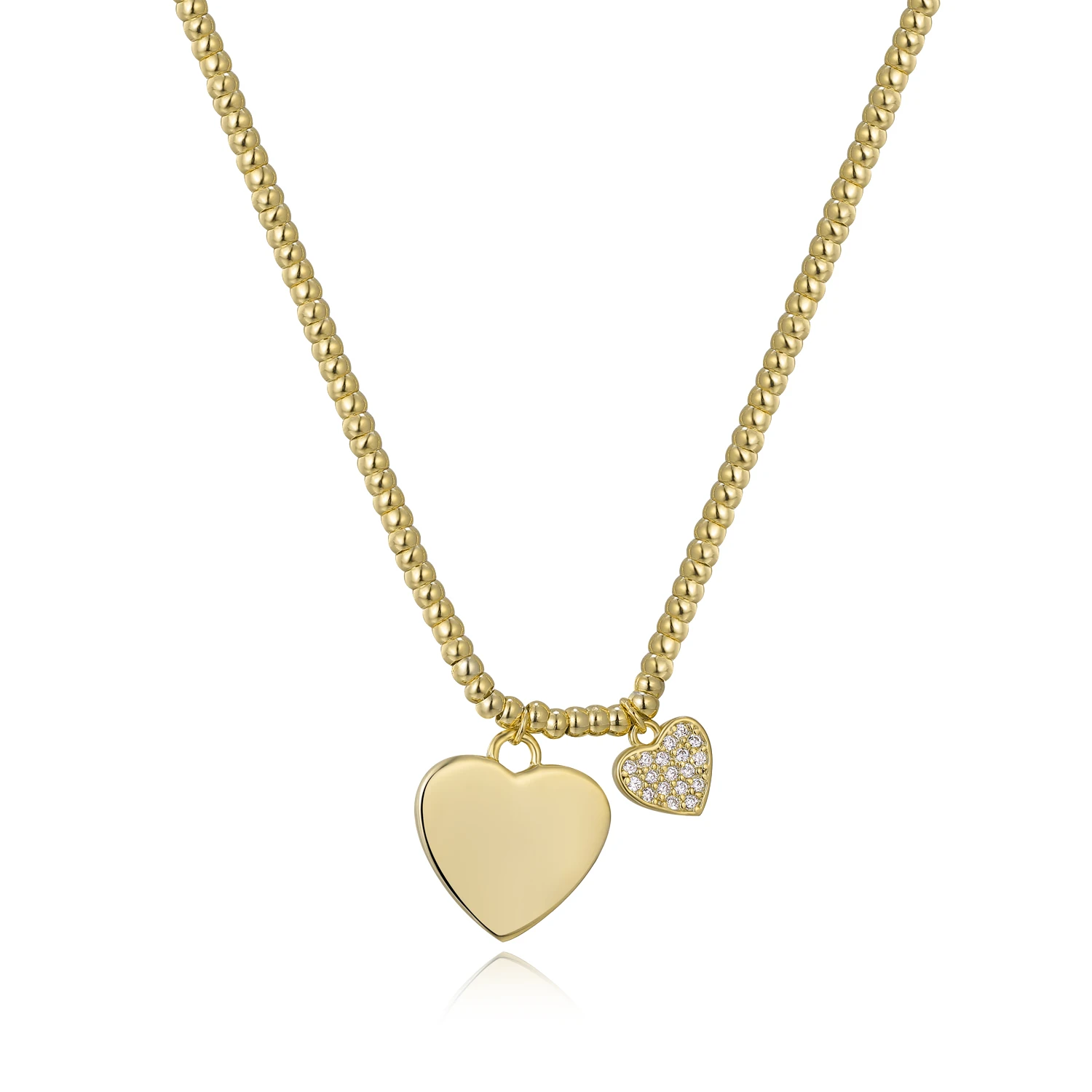 Keiyue 925 Sterling Silver Double Heart Shaped Pendant Necklace Personalized Wedding Gift Zircon Trendy Beads for Women Parties