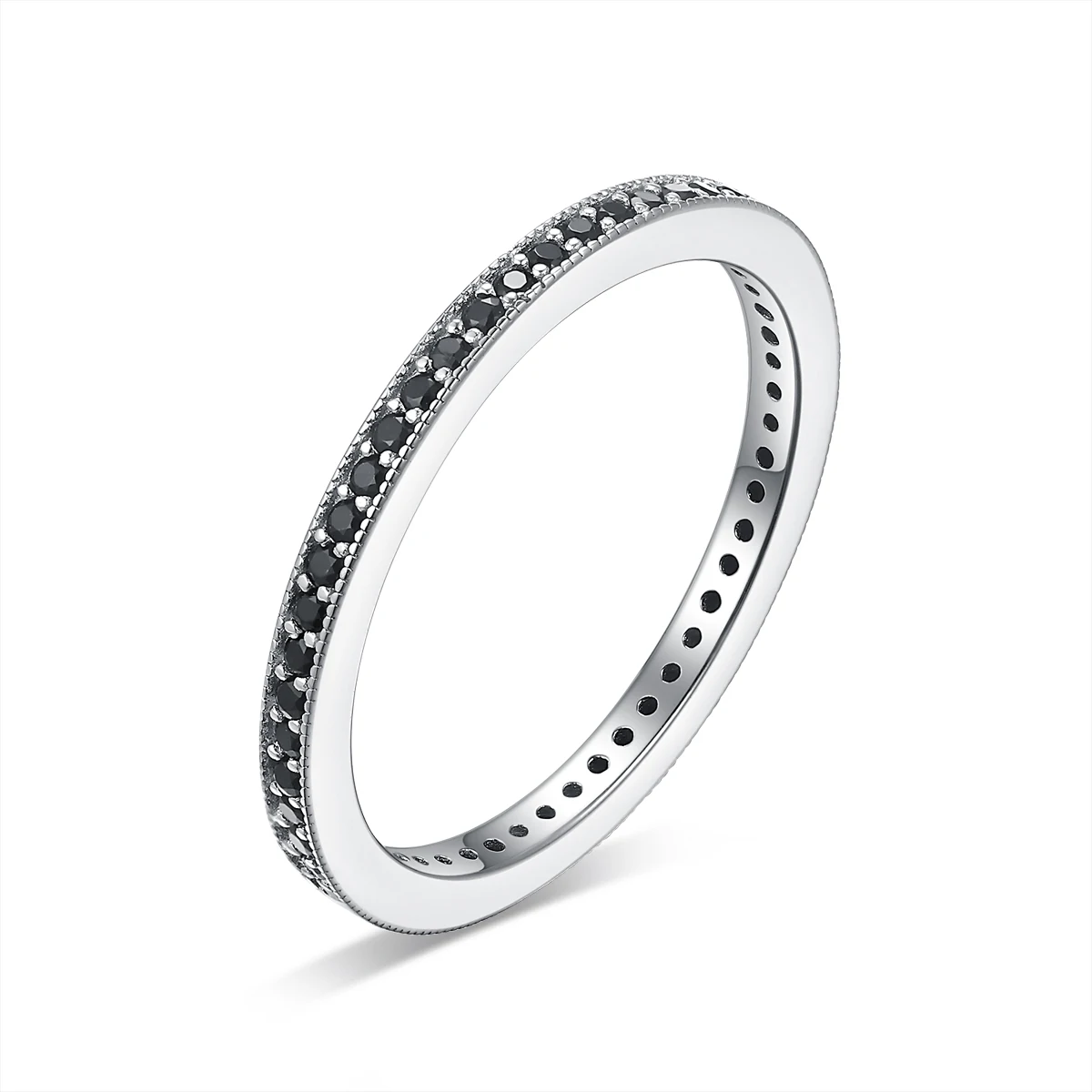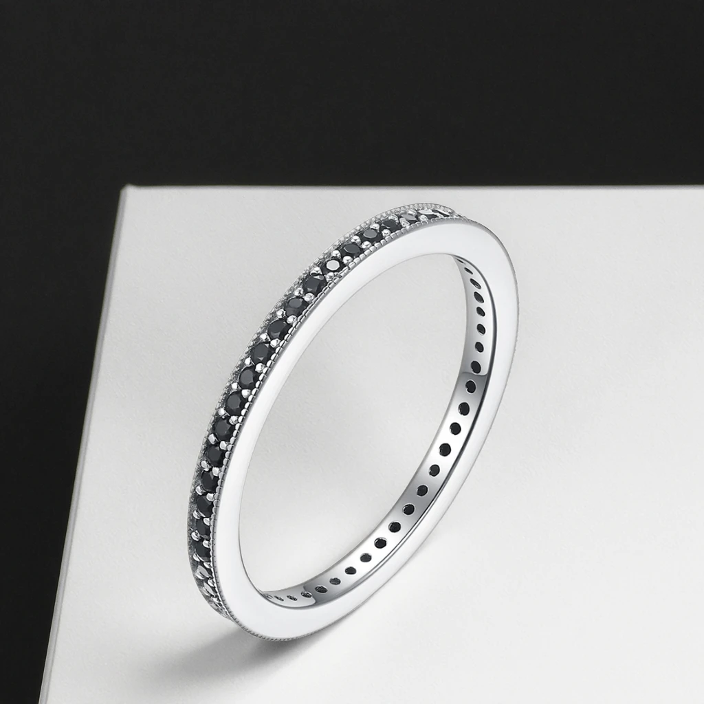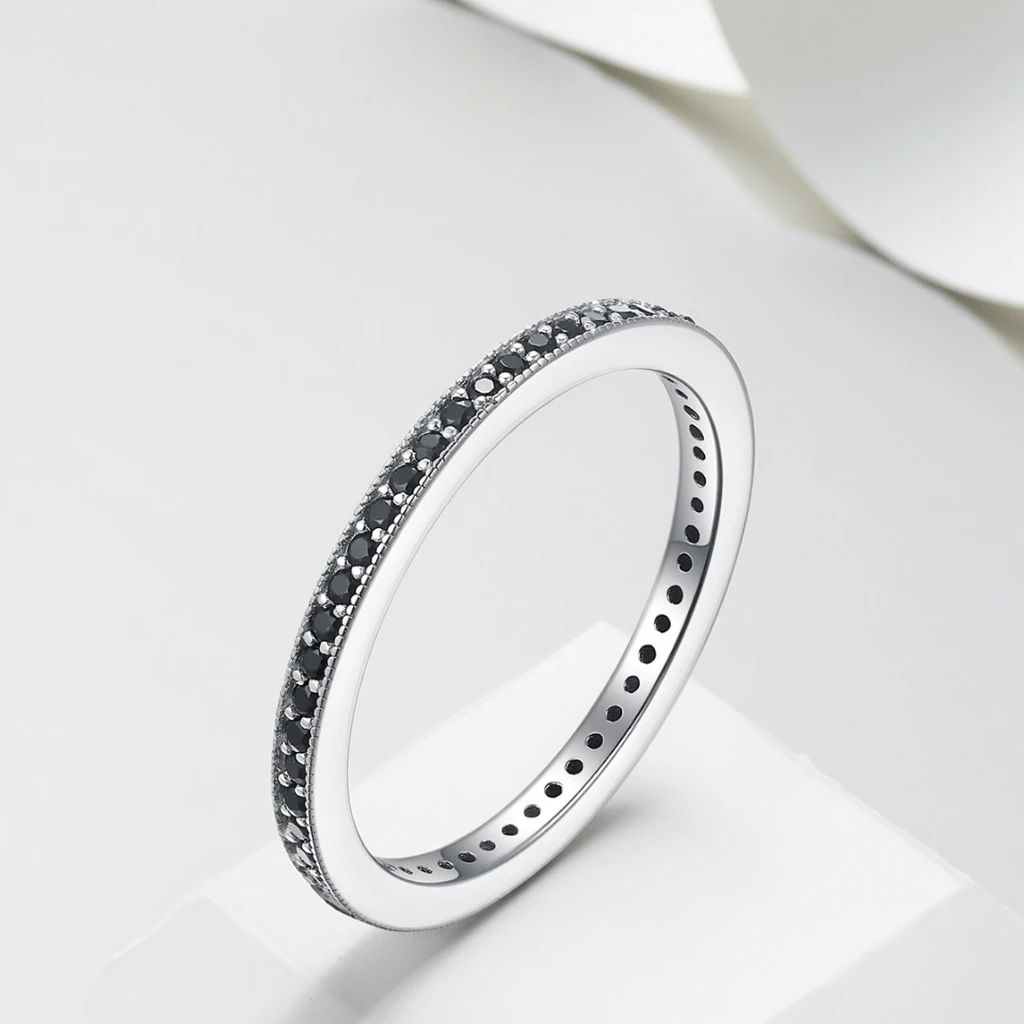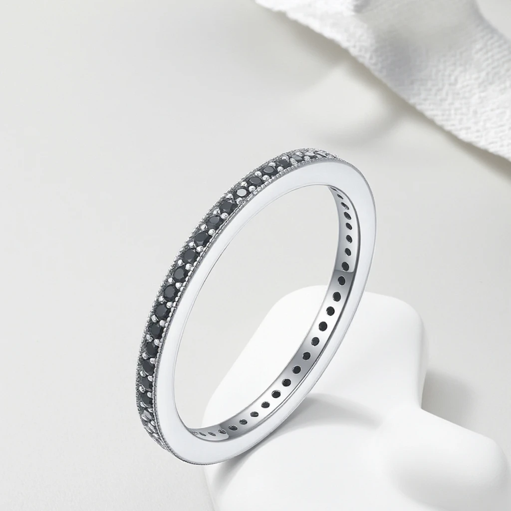 Keiyue Factory Direct 925 Silver Black Stone Rings for Women Trendy Claw Setting CZ Wedding Bands
