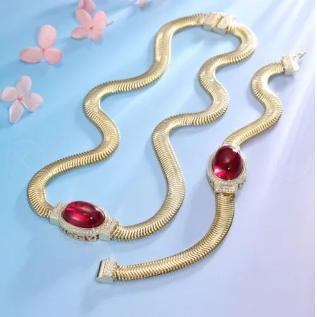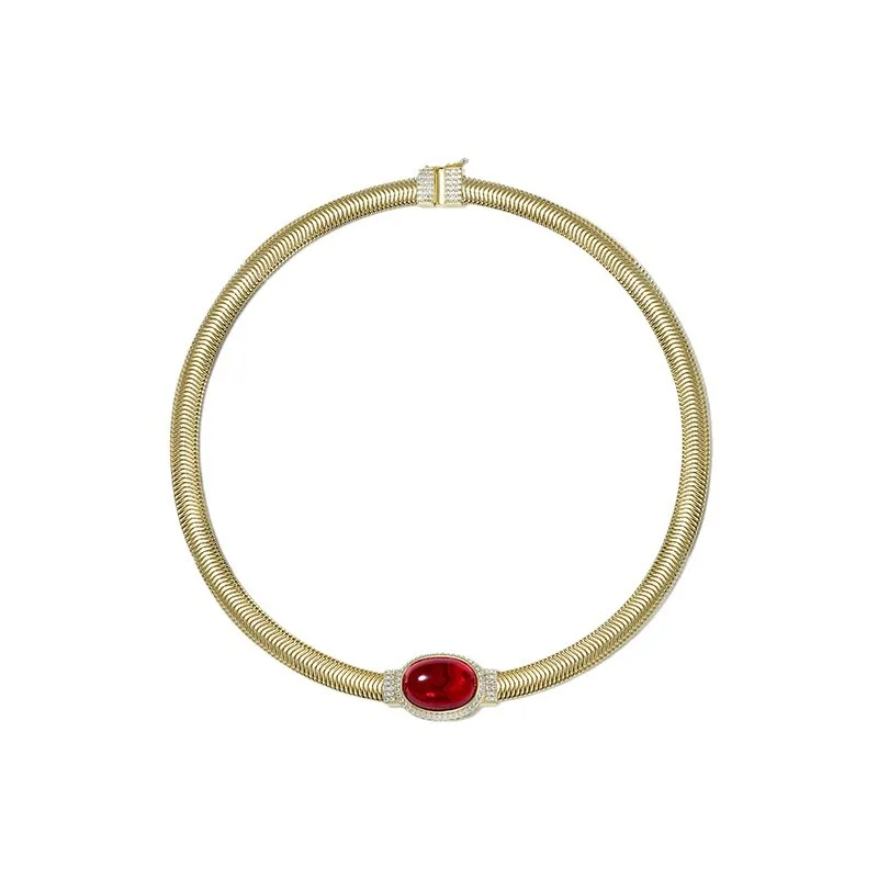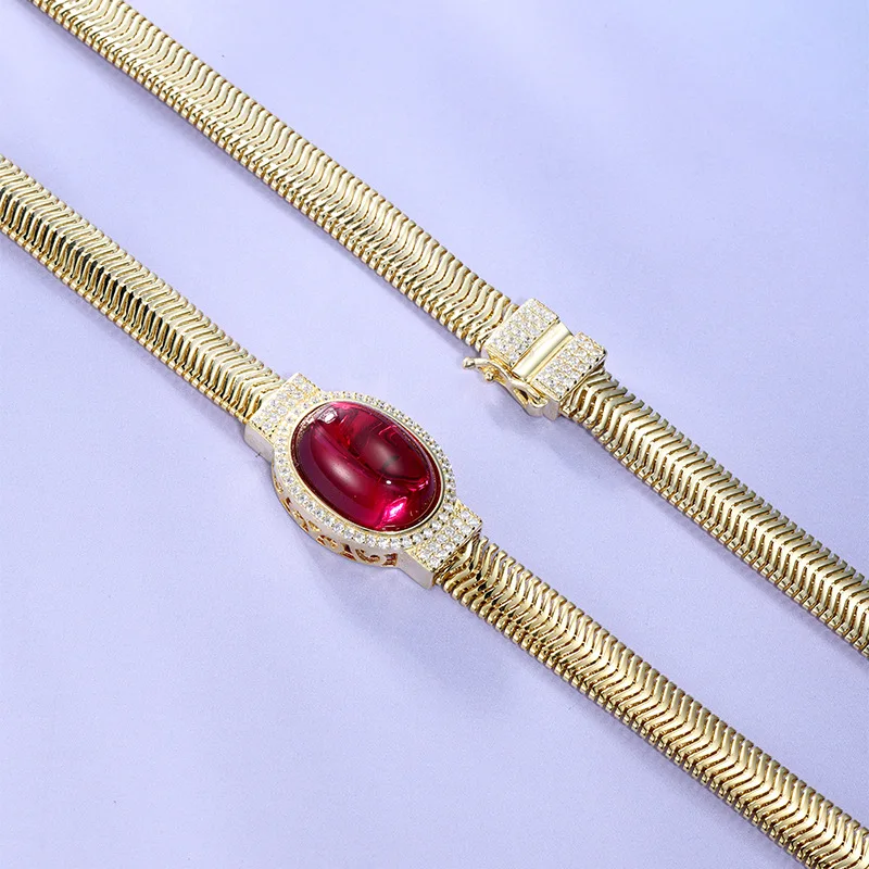 Retro S925 Silver Jewelry Cross-Border New Year Gift Red Corundum Caibao Necklace Joker Collar Zircon Stone
