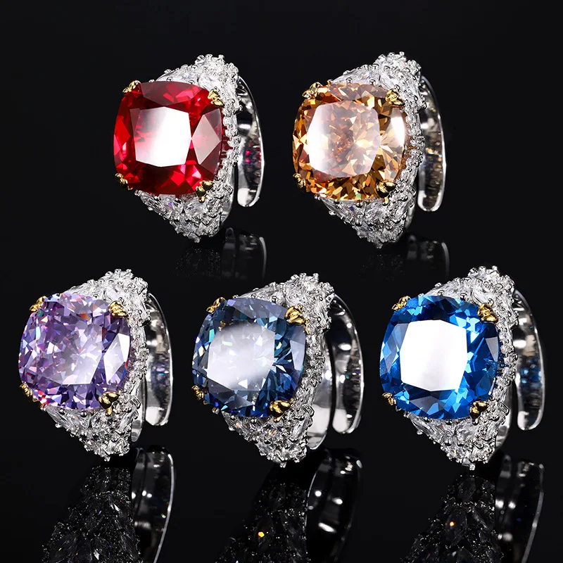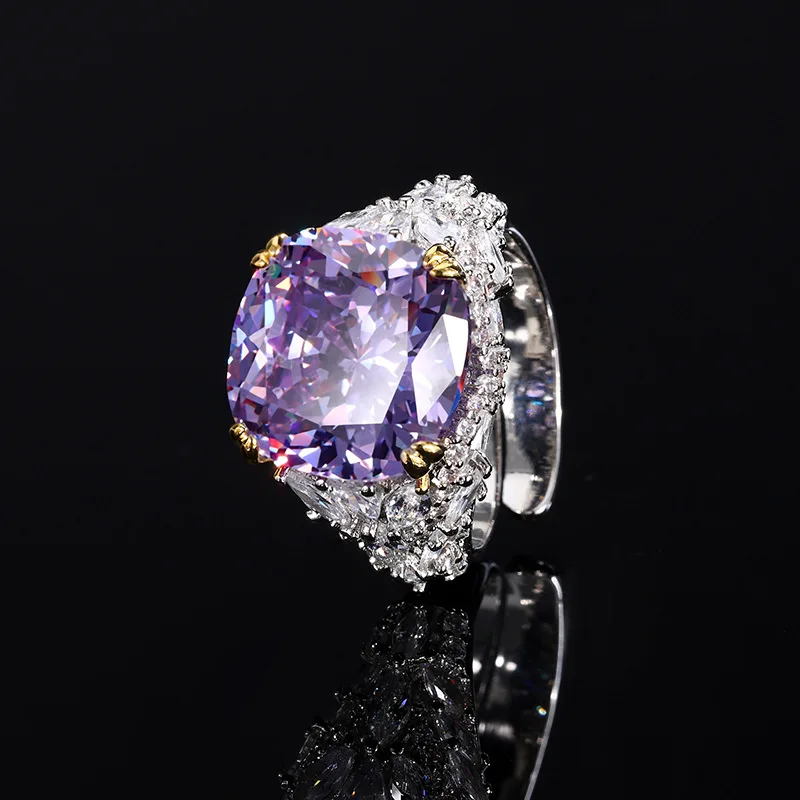 Collection Gold Plated Copper Zircon Retro Fat Square Ring for Women
