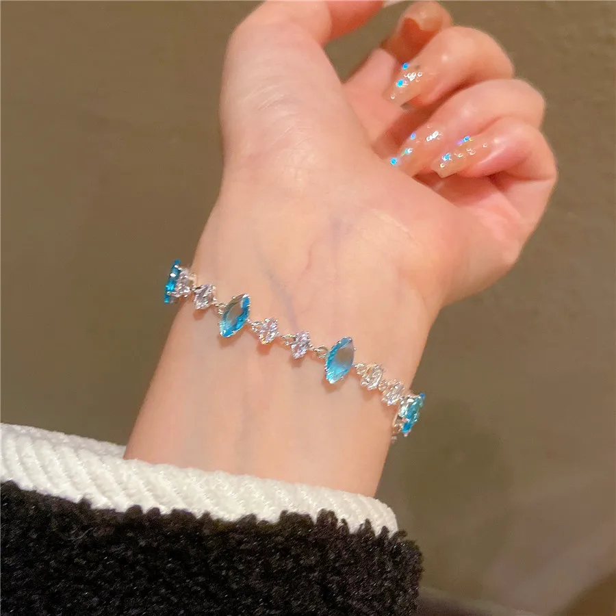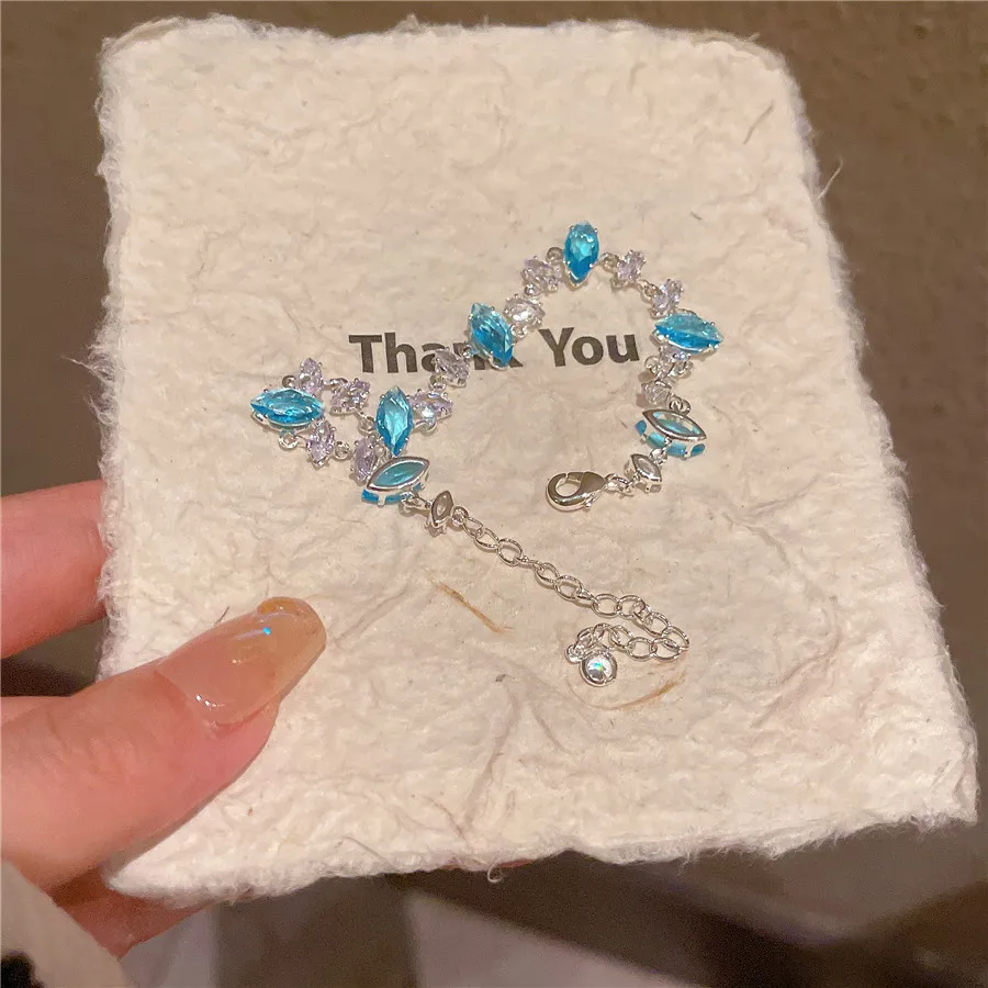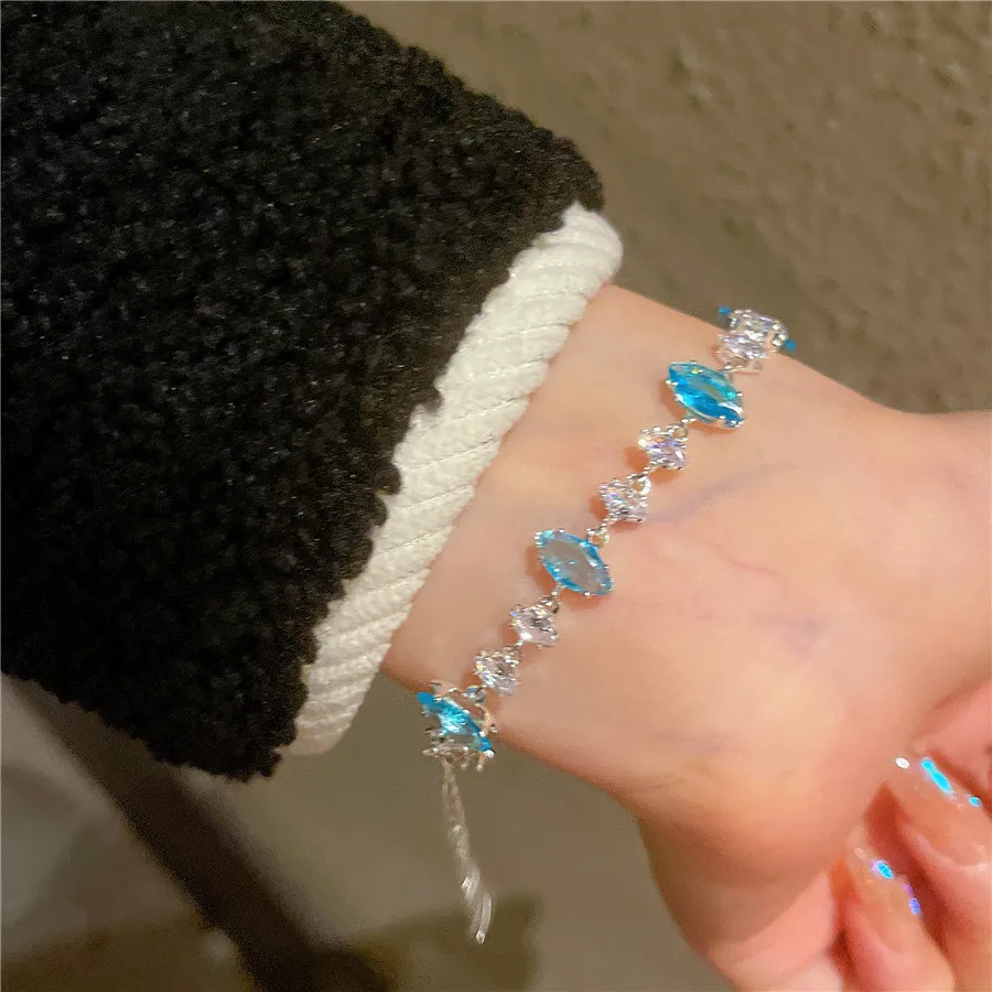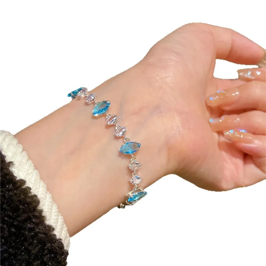 2026 Summer Light Blue Clear Zircon Bracelet Exquisite Hand-Rope Net Red Wind Charm Bracelet Made From Brass for Women