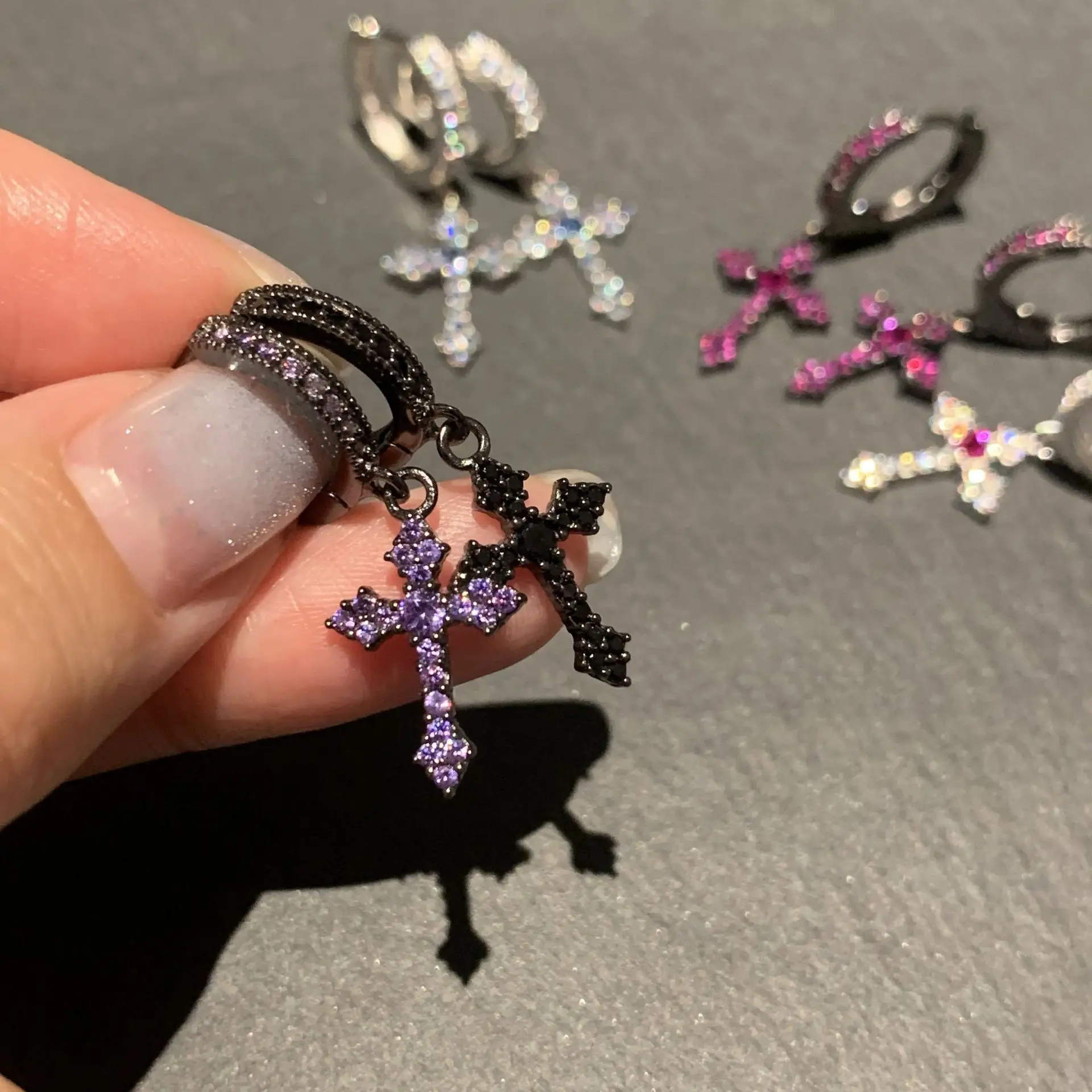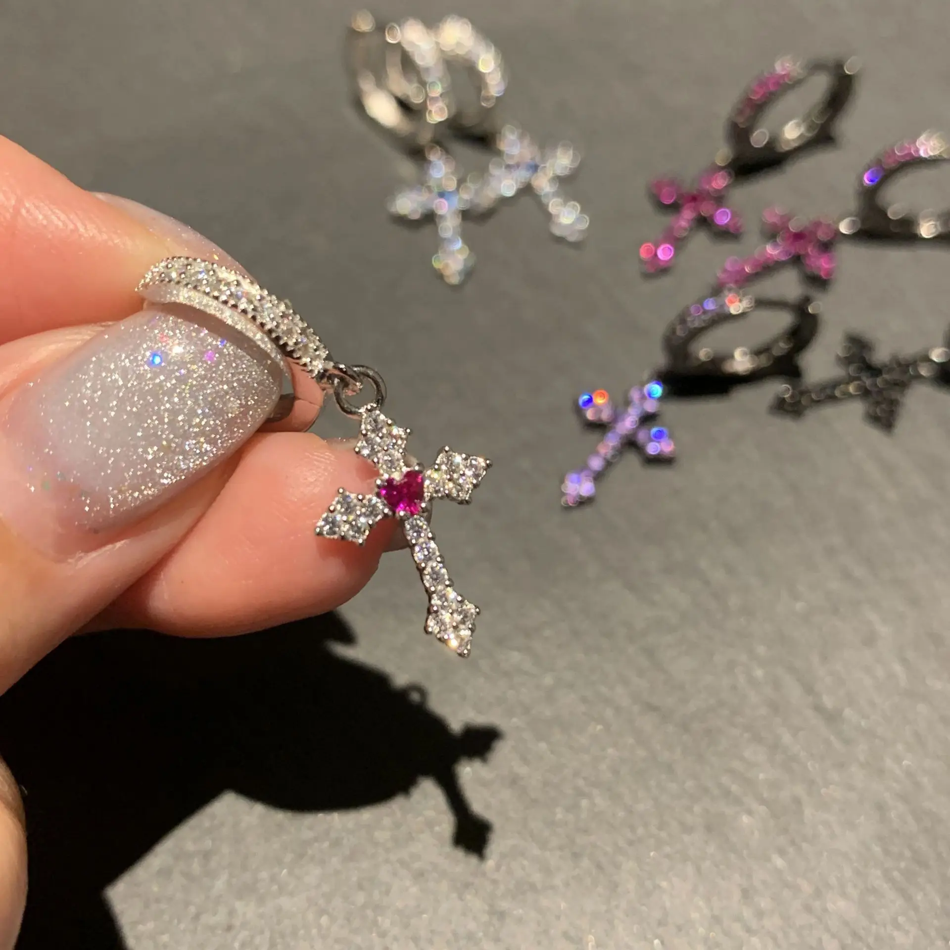 S925 Sterling Silver Full Diamond Cross Drop Earrings Unisex Ear Buckle Niche Advanced Sense Sweet Cool Personality Ear Clips