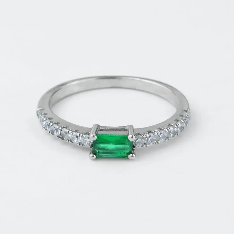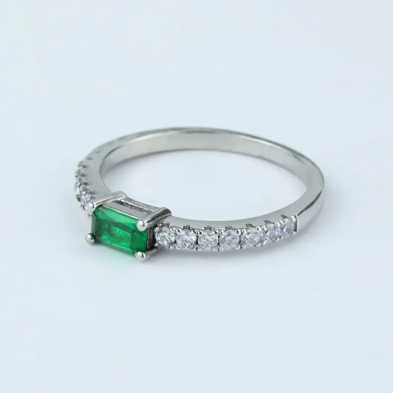 Keiyue Simple Four Prong Engagement Ring 925 Sterling Silver Wedding Band With White Gold Inlay Unisex for Men Women Gift Party