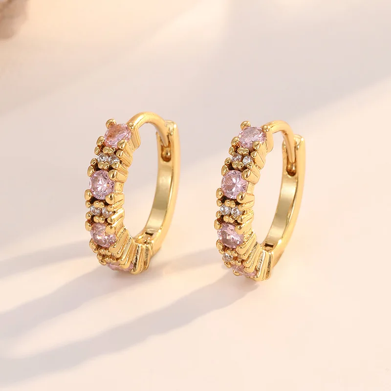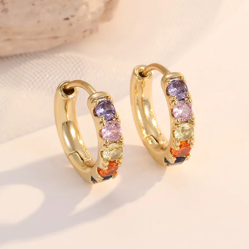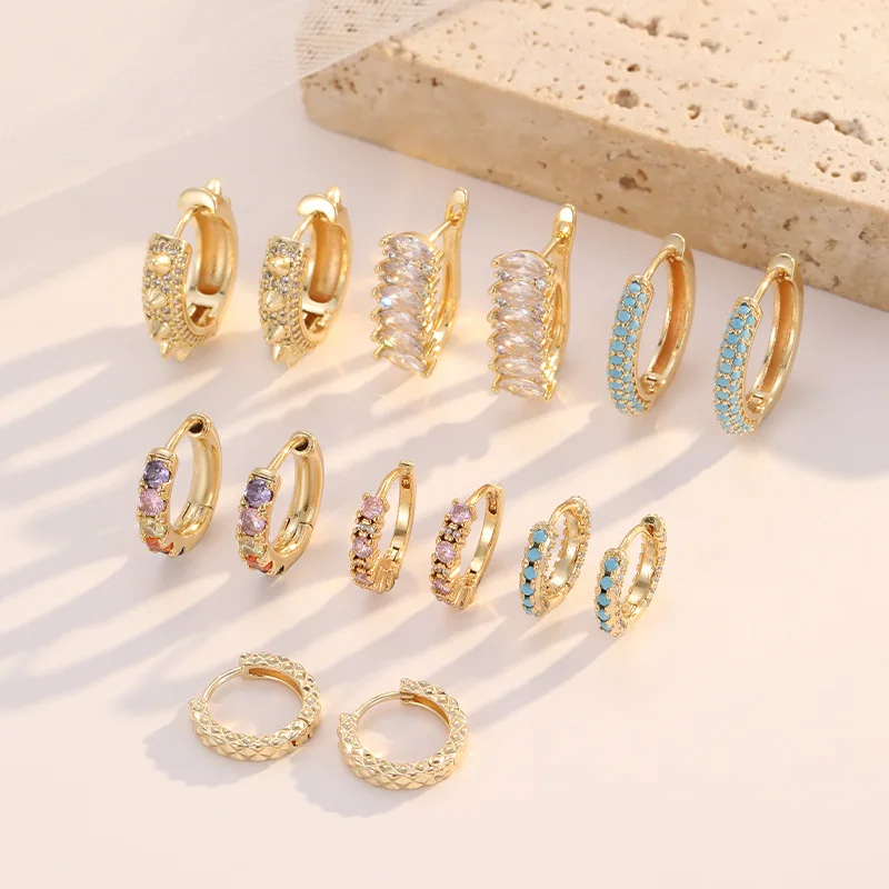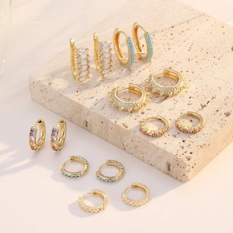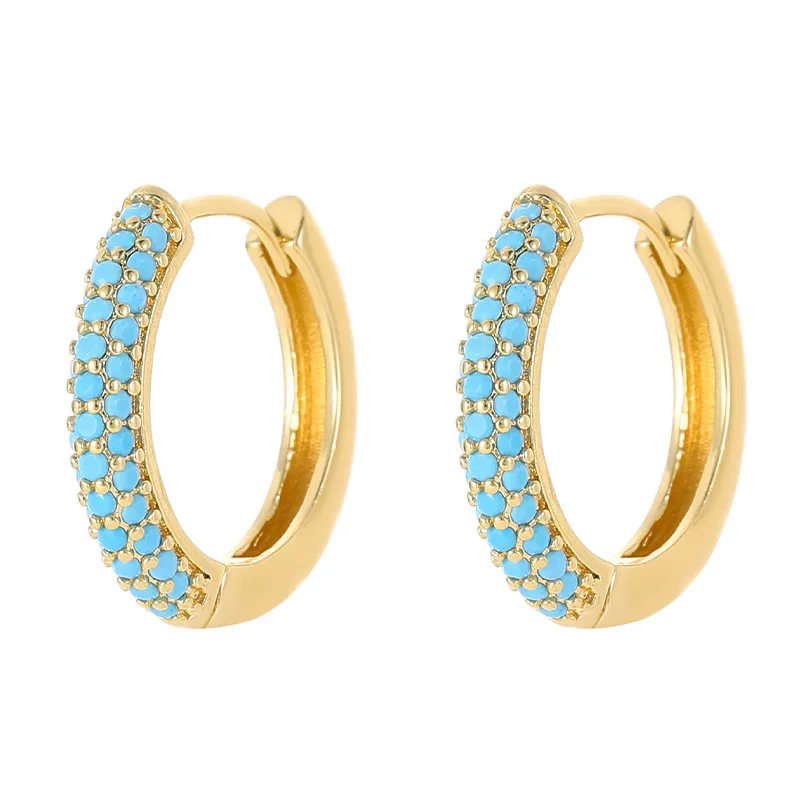 European American Vintage Punk Style Micro-Infused Zircon Full Diamond Women's Ear Buckles 14K Gold Fashion Hoop Earrings