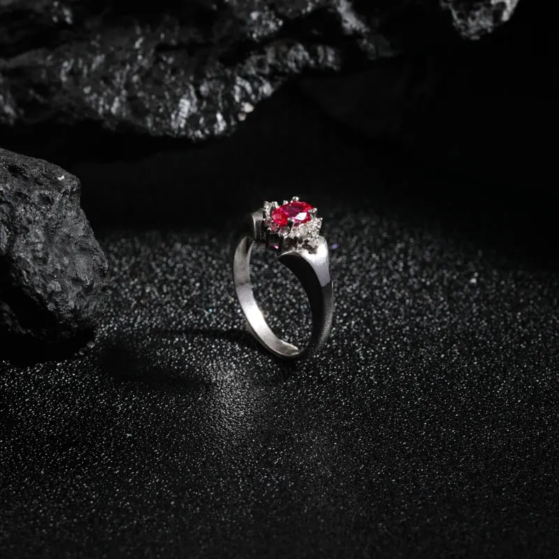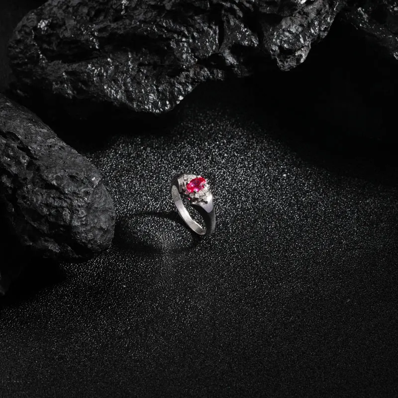 Keiyue Women's Romantic Tassel Engagement Ring 925 Stamp Silver with Ruby Zirconia Fashionable for Party or Anniversary