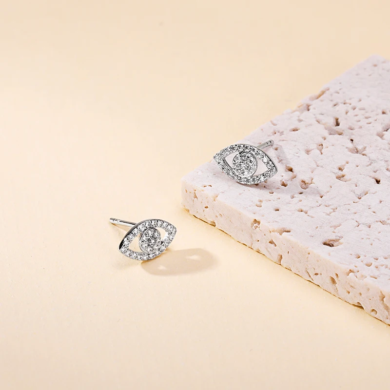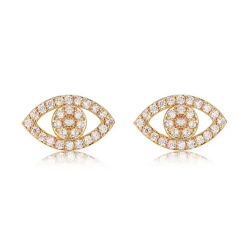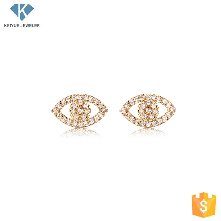 Keiyue Women's Saudi Arabia Gold-Plated and Silver Plated Eye Stud Earrings Top Design with Zircon Popular Designer Brands