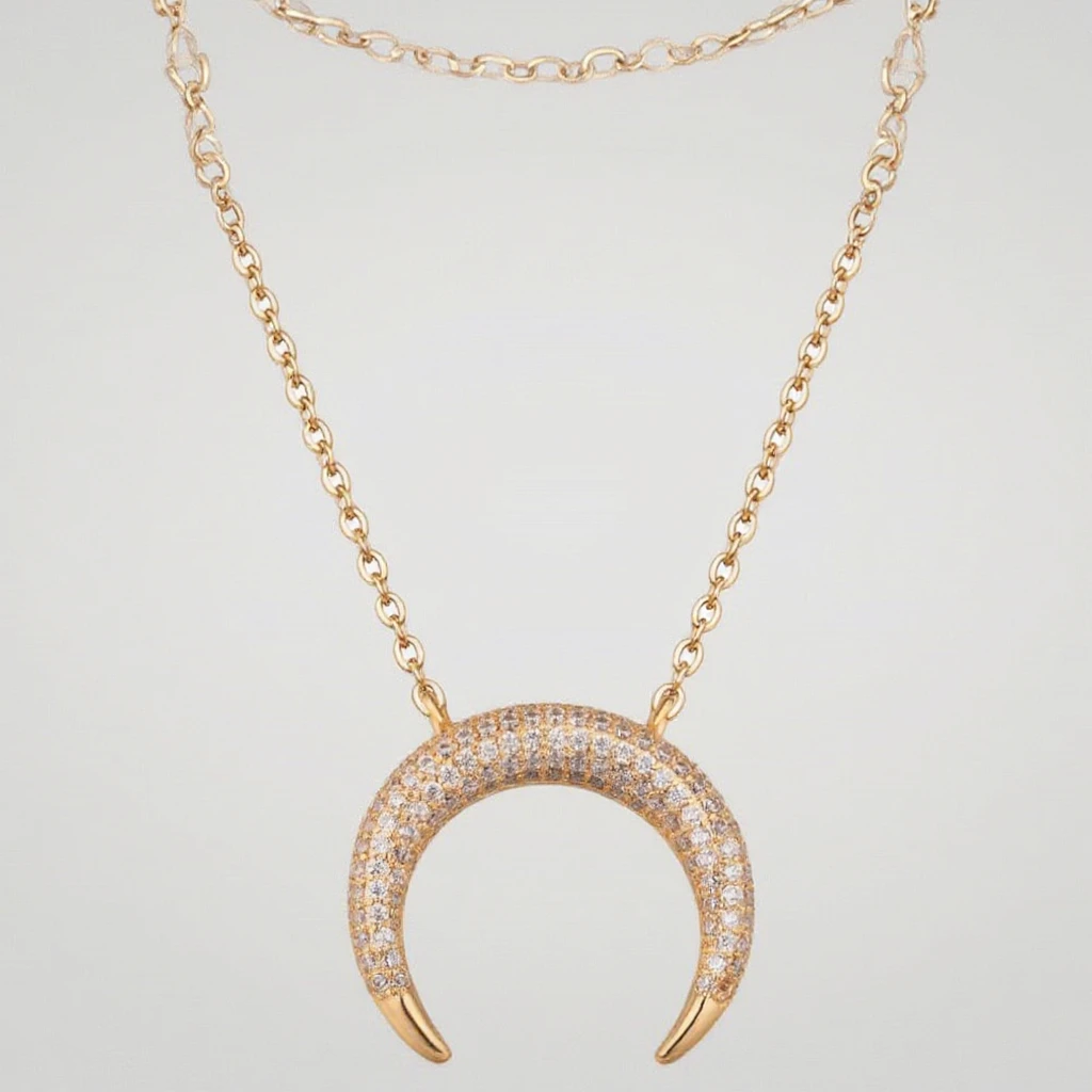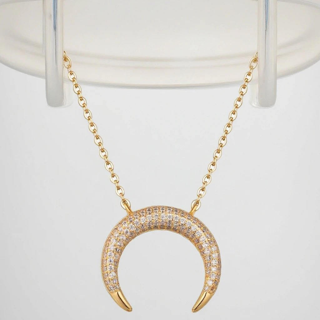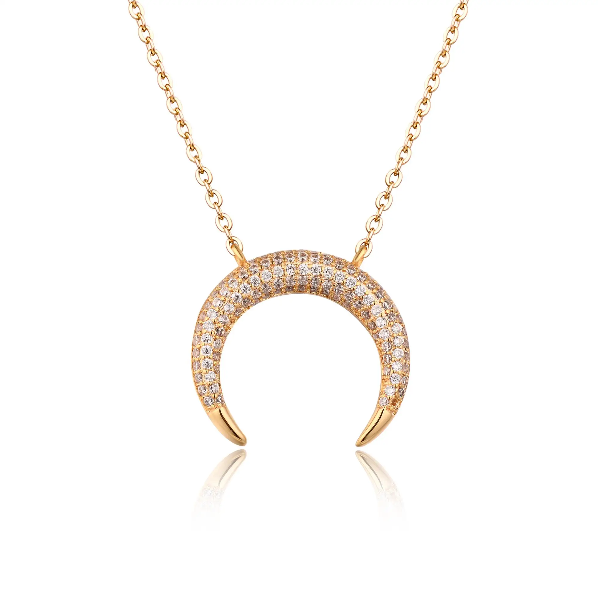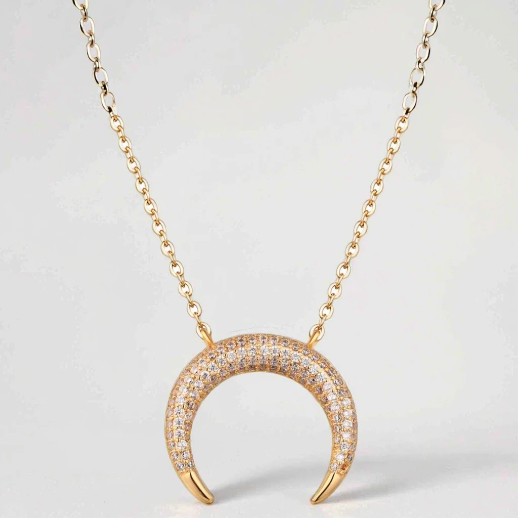 Keiyue Gold 24k Plated Cz Pave Brass Sailor Moon Jewelry Necklace Moon Necklace