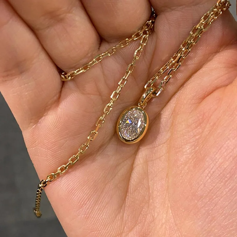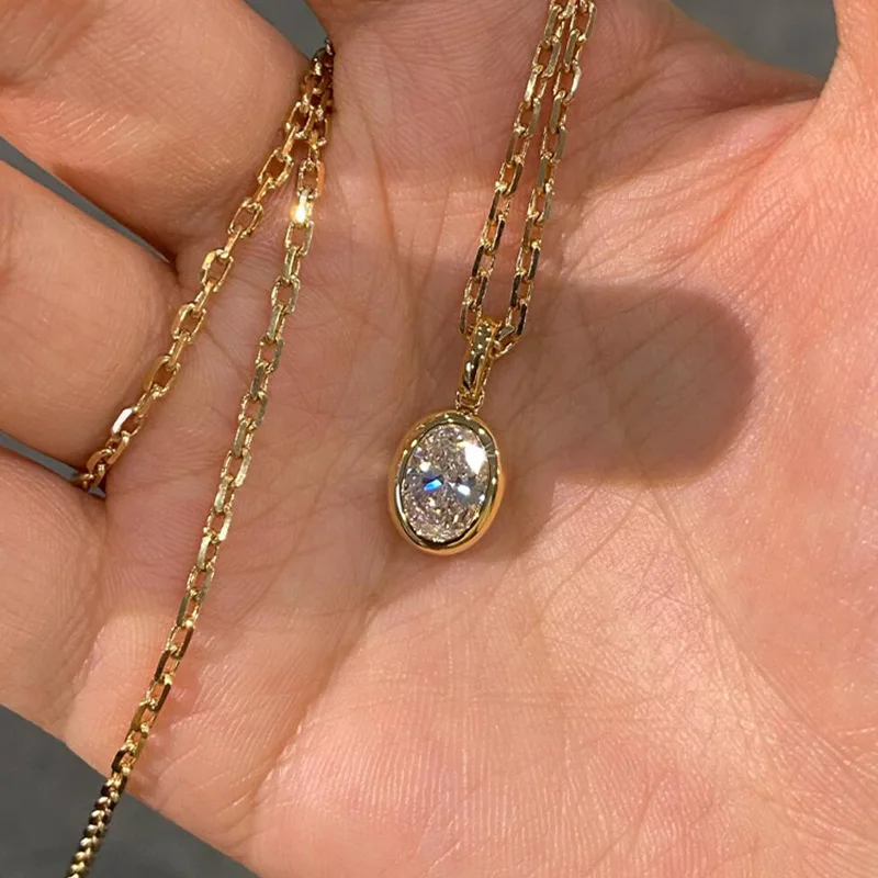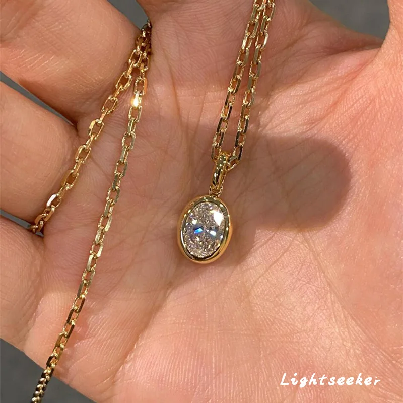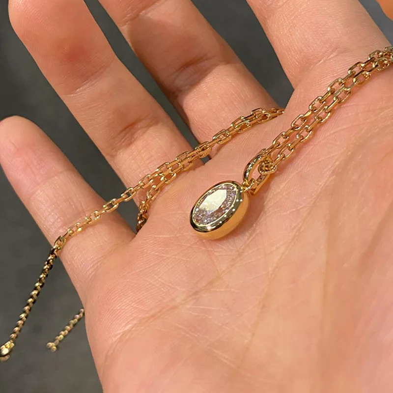 Women's Golden Flash Oval Pigeon Egg Chokers Necklace Light Luxury Exquisite Flash Diamond Zircon Chain