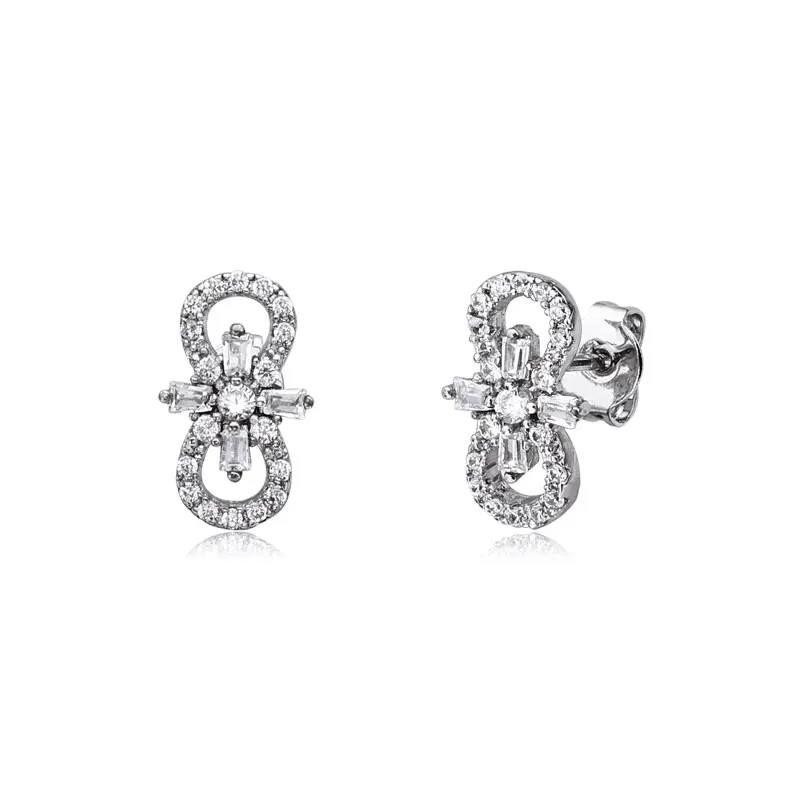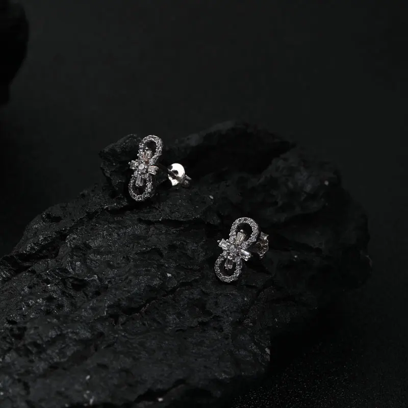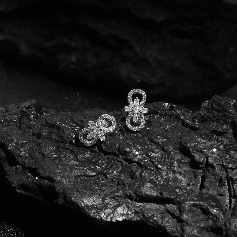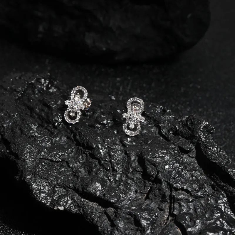 Keiyue White Zircon Hoop Earrings Sterling Silver Wedding Fashion Designer