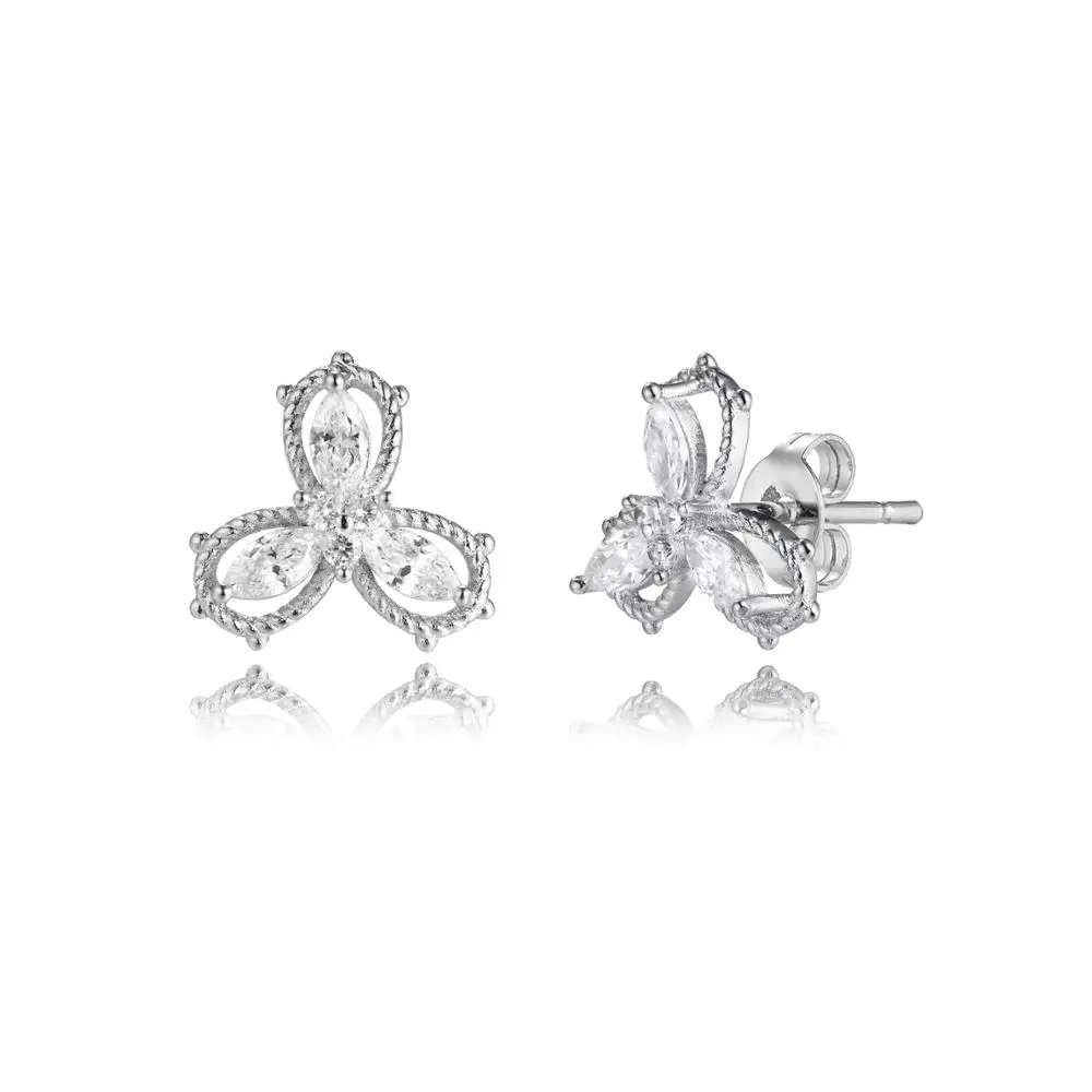 Keiyue Twist Cubic Zirconia Geometric Clover Silver Brass Stud Earrings 925 Sterling Silver Party Wedding Engagement for Women