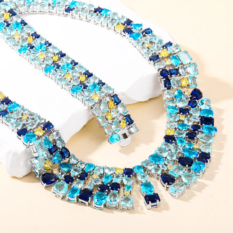 Keiyue Bohemia Women's Statement Necklace Wholesale Big Bead Copper CZ Costume Jewelry With Diamond and Zircon Religious Style
