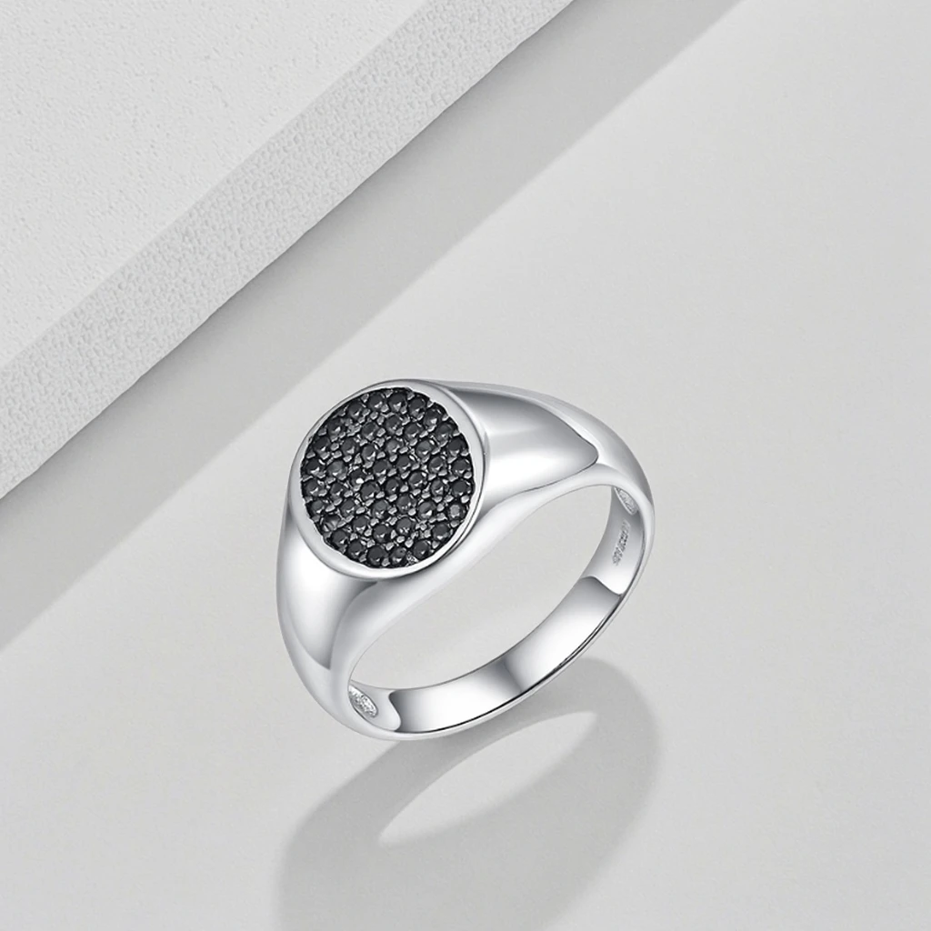Keiyue 2026 Fashion Silver Plated 925 Silver Black CZ Stone Rings for Men with Claw Setting Reach Certified Daily Wear