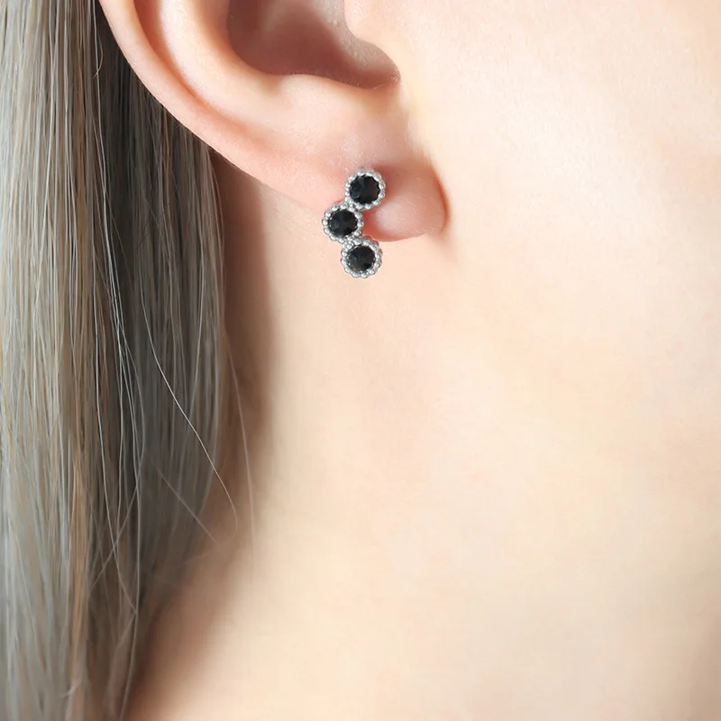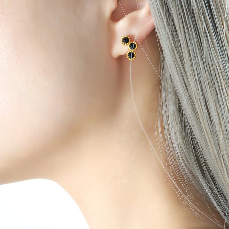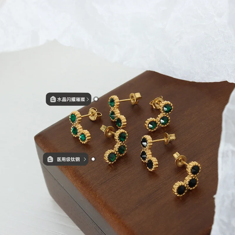 2023 New Fashion Wedding Gift Bezel Setting 18K Gold Plated Stainless Steel Tarnish Jewelry Black Green Zircon Stud Earrings