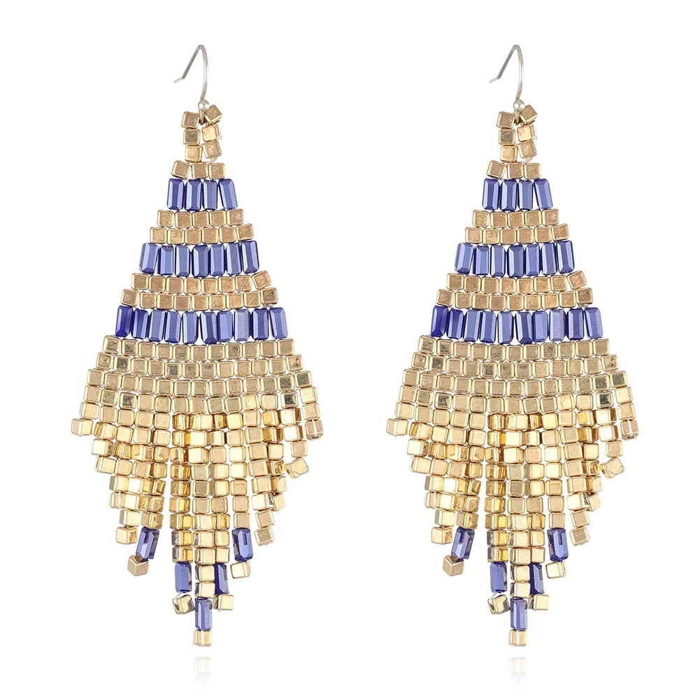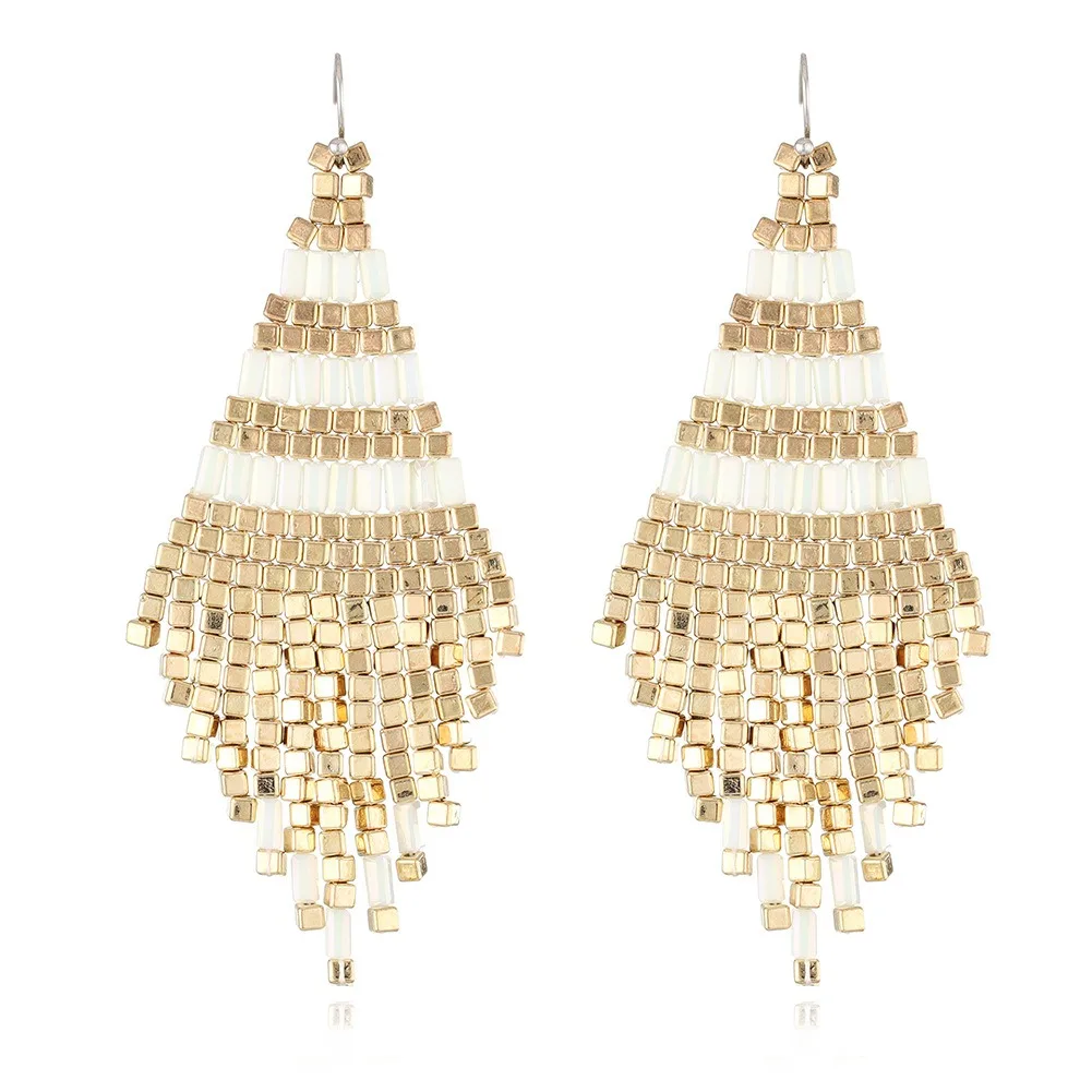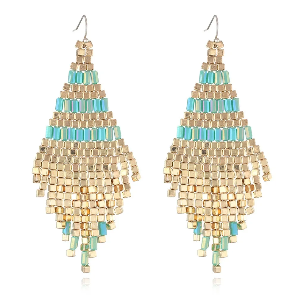 New Design Ethnic Style Handmade Beaded Tassel Hook Earrings Colorful Geometric square Bead Pendant Earrings for Women