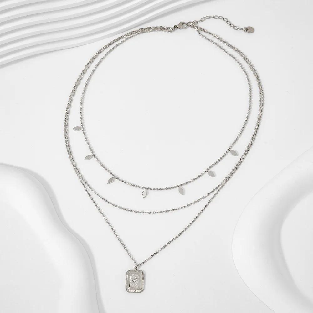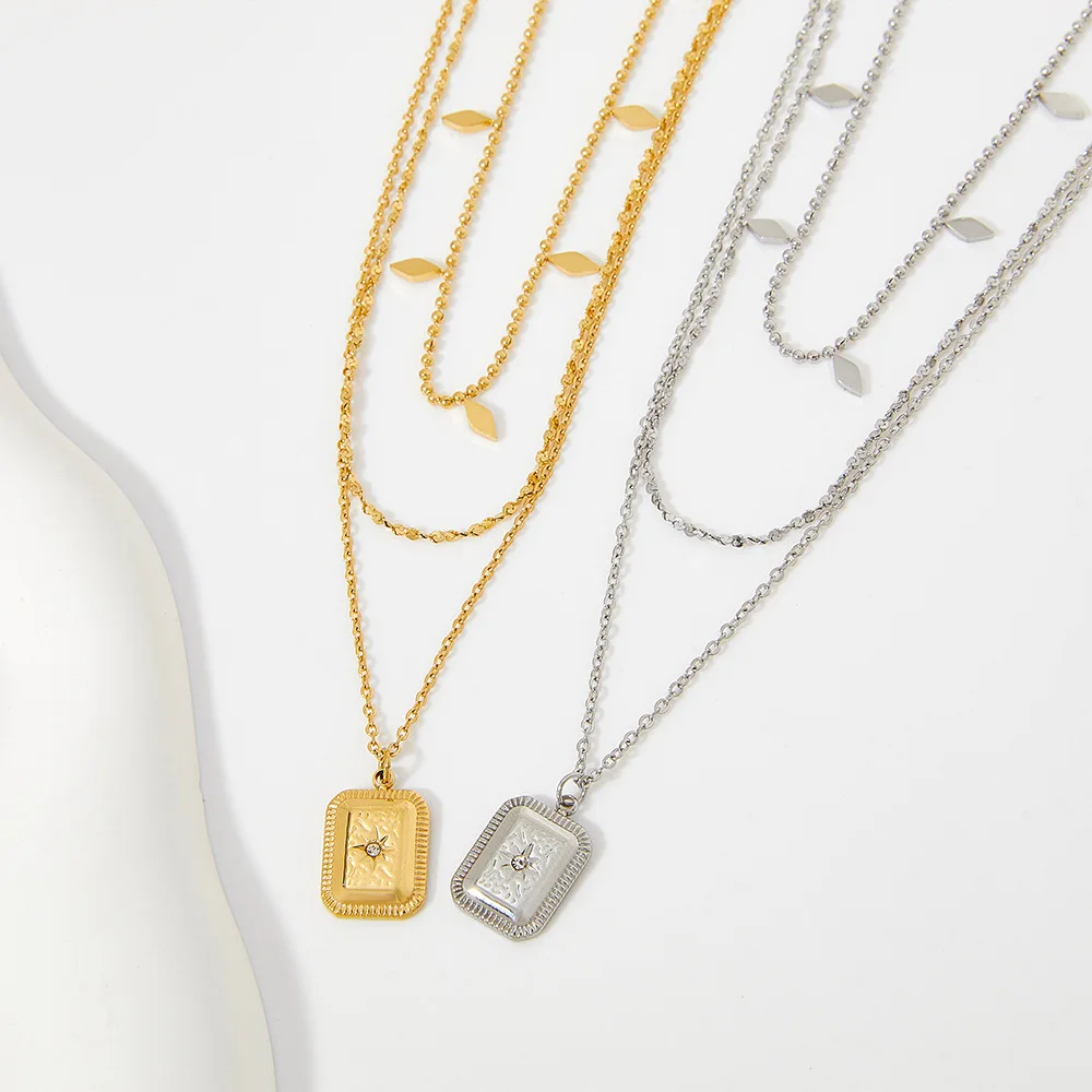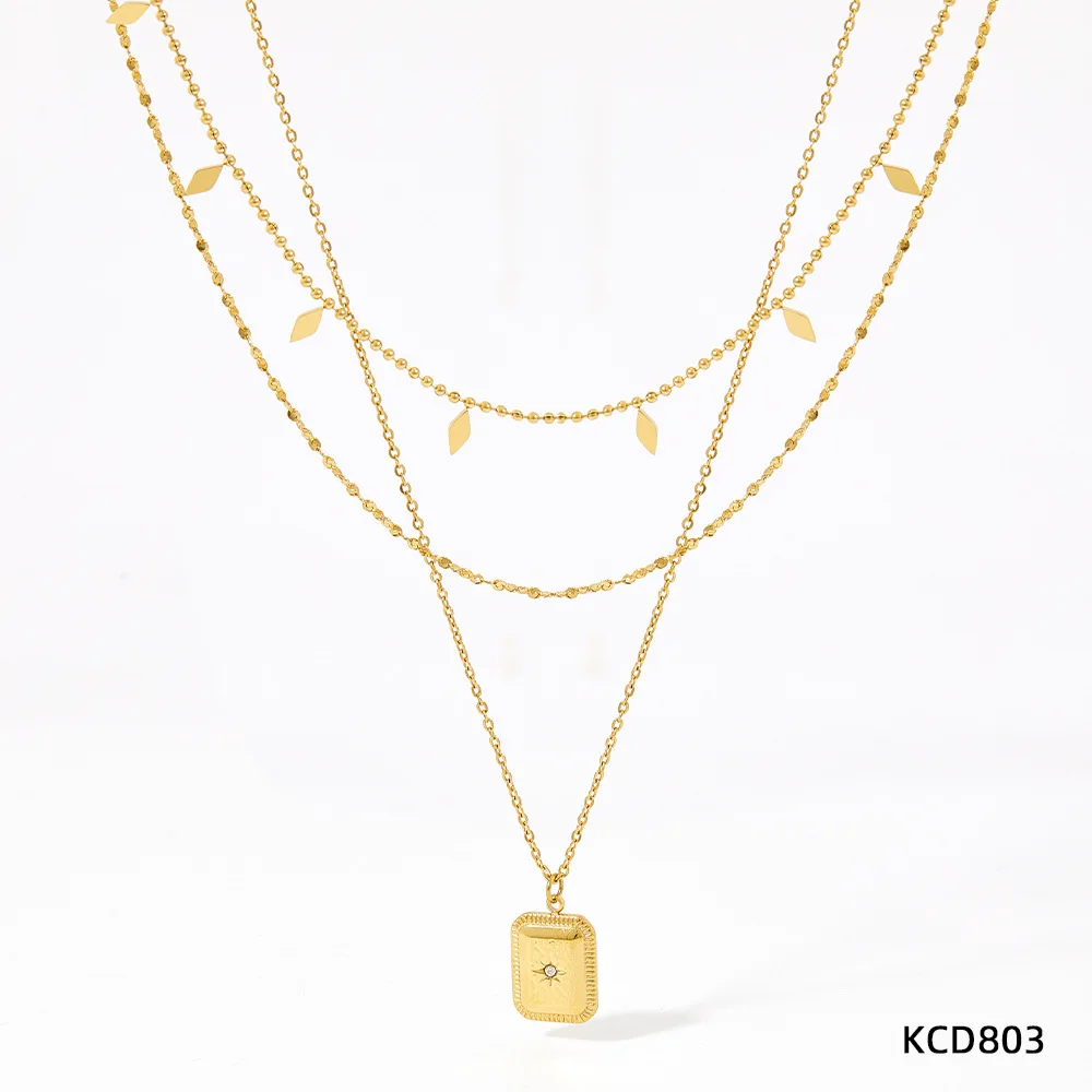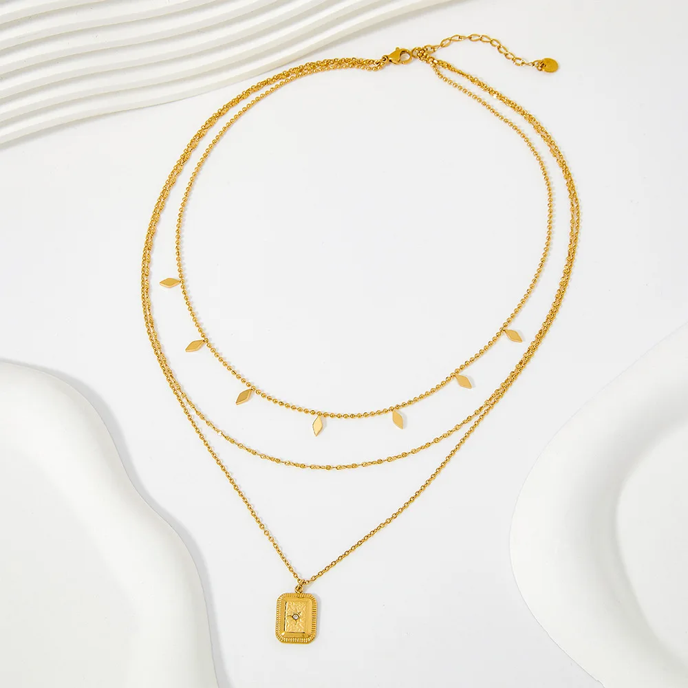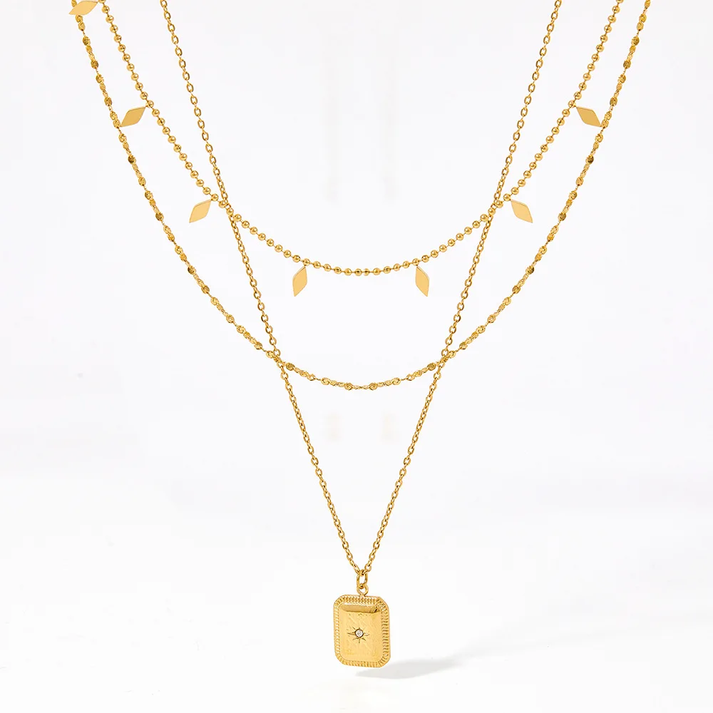 Stainless Steel Layered Chain Coin Necklace Delicate Designs 18K Gold Plated Women Necklace 3 Row Layered Pendant Necklaces