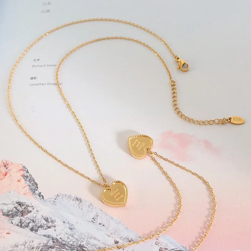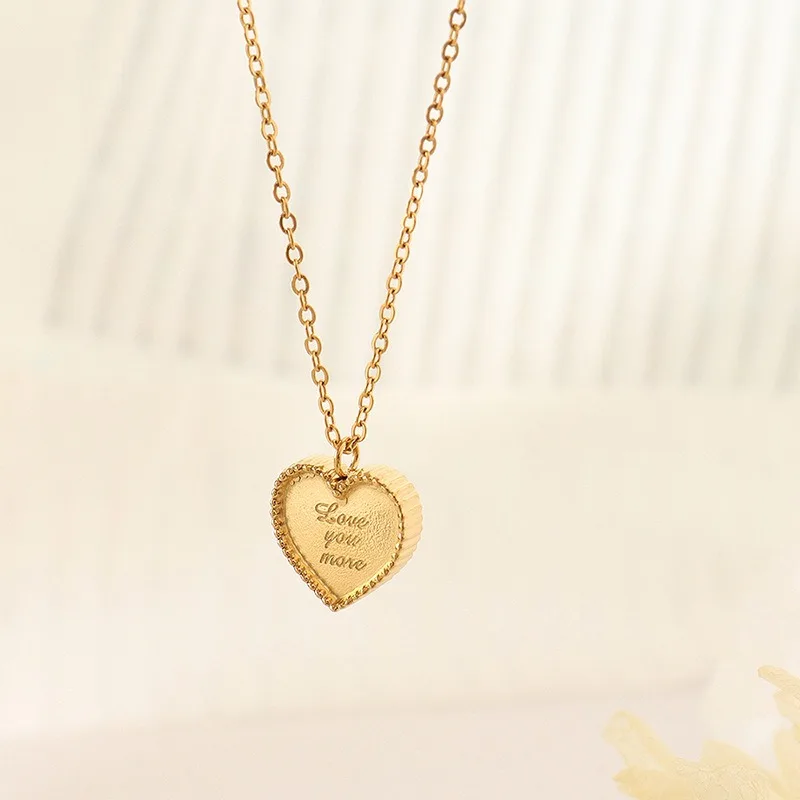 Romantic Jewelry Frosted Peach Stainless Steel Heart Pendant Women Love Necklace Couples Valentine's Day Gift Jewelry for Women