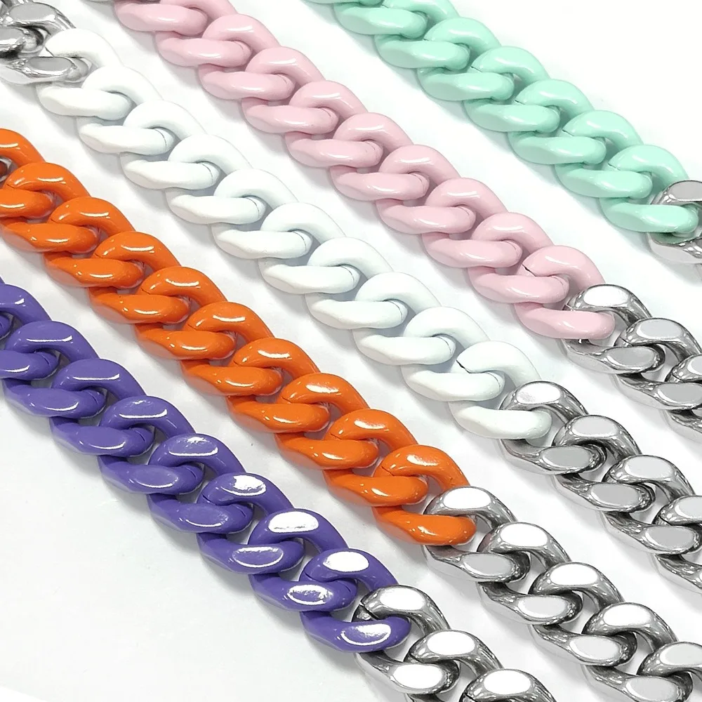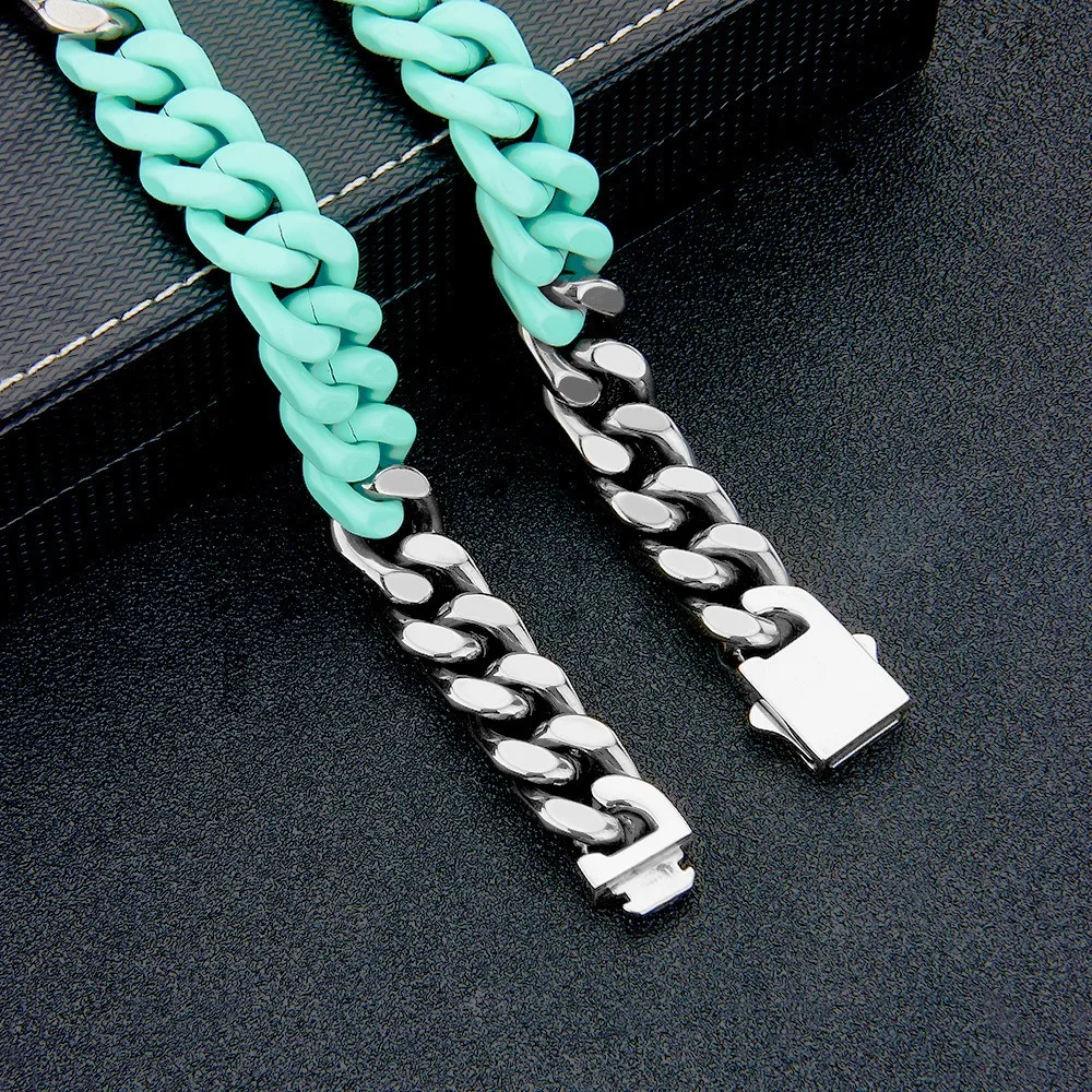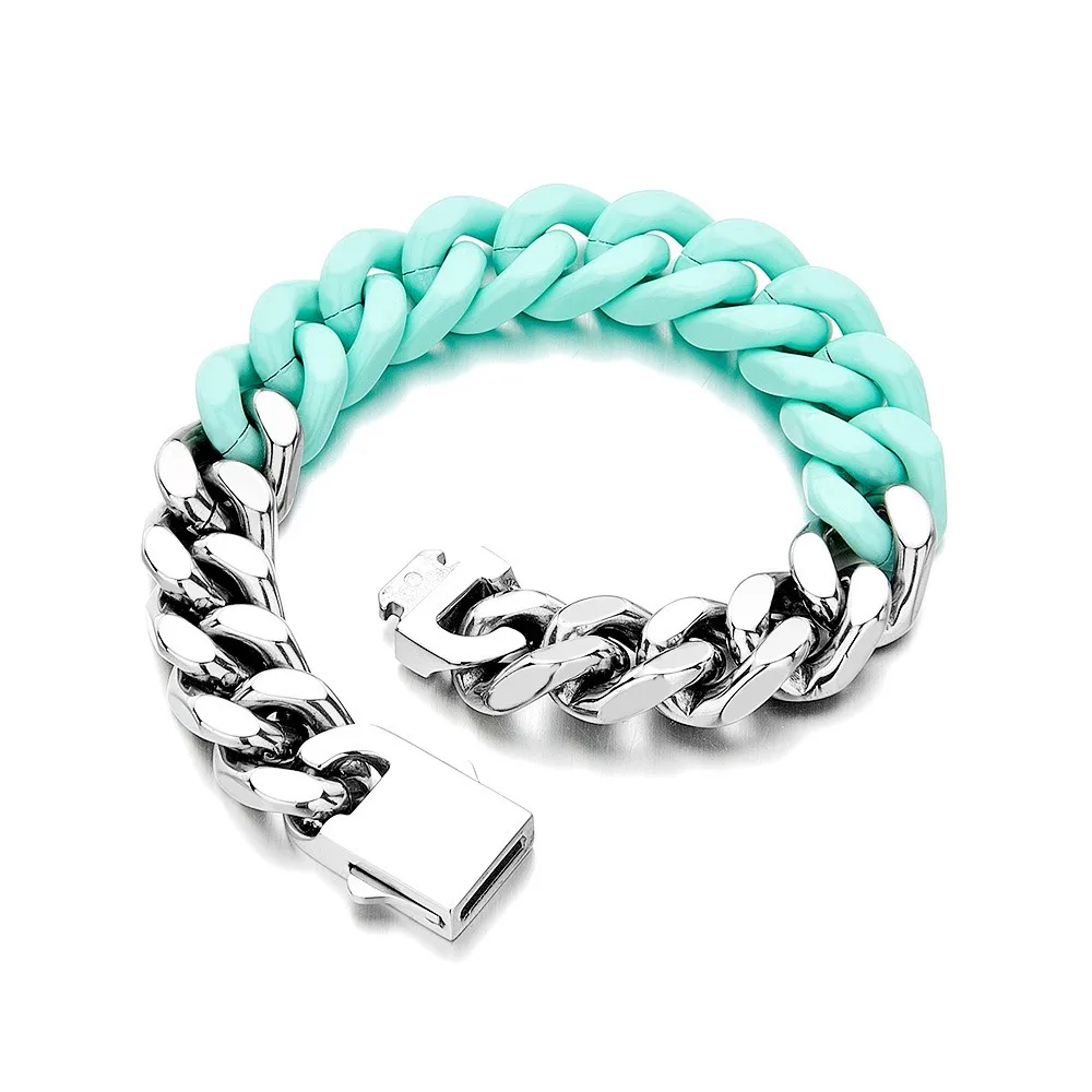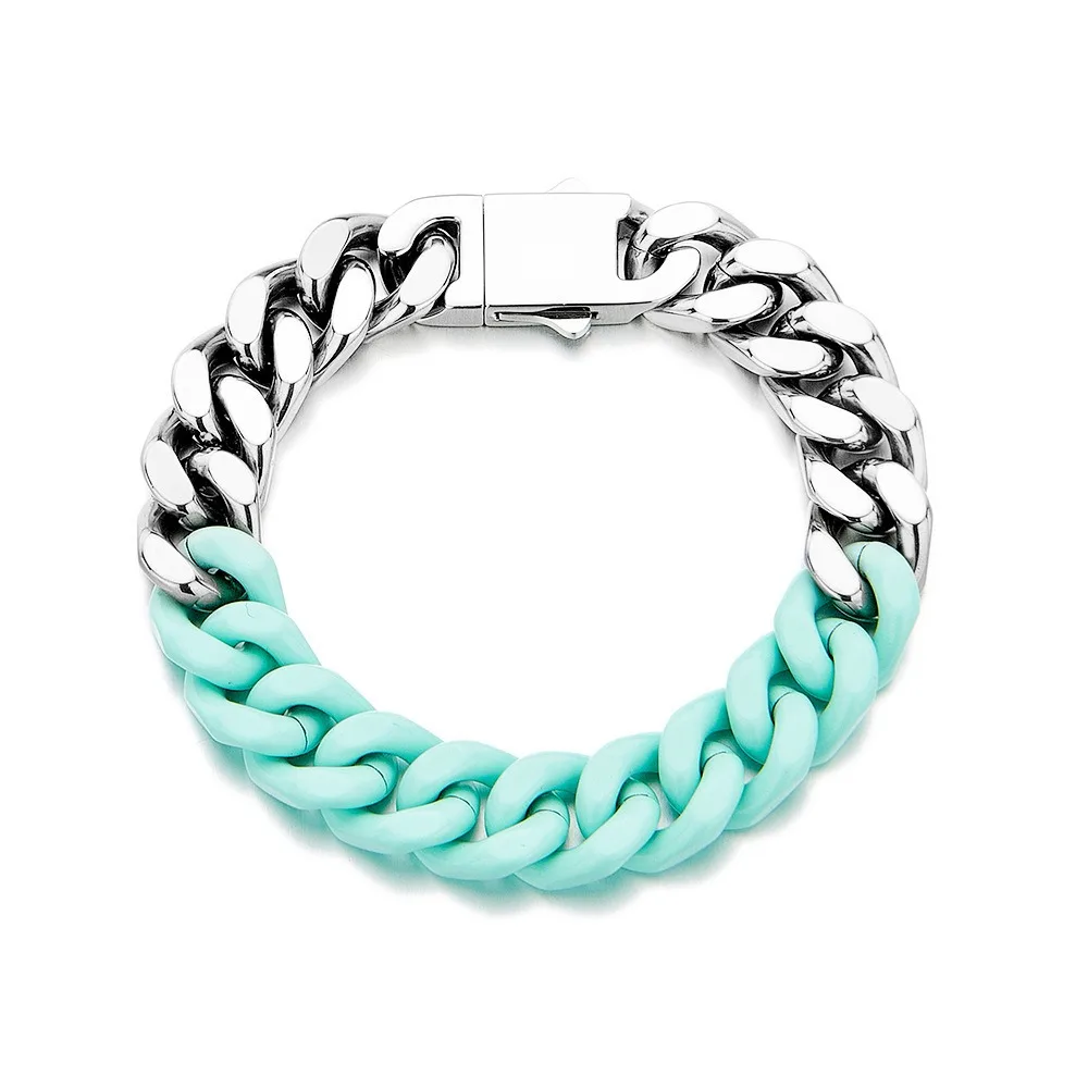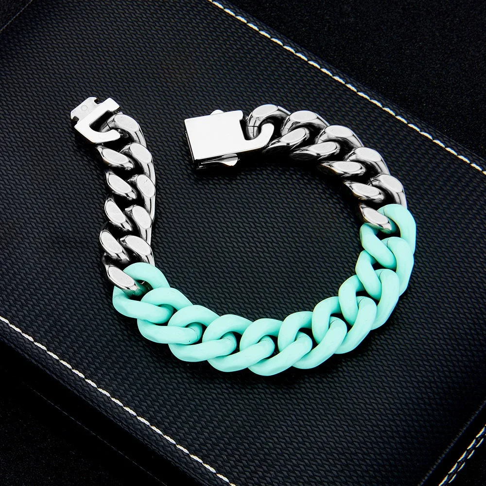 2022 Light Blue Painting Stainless Steel Chunky Cuban Chain Thick Bracelet for Mens Jewelry