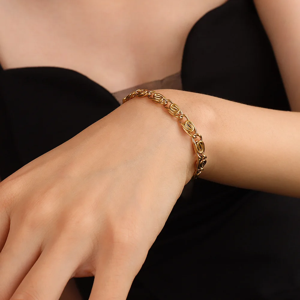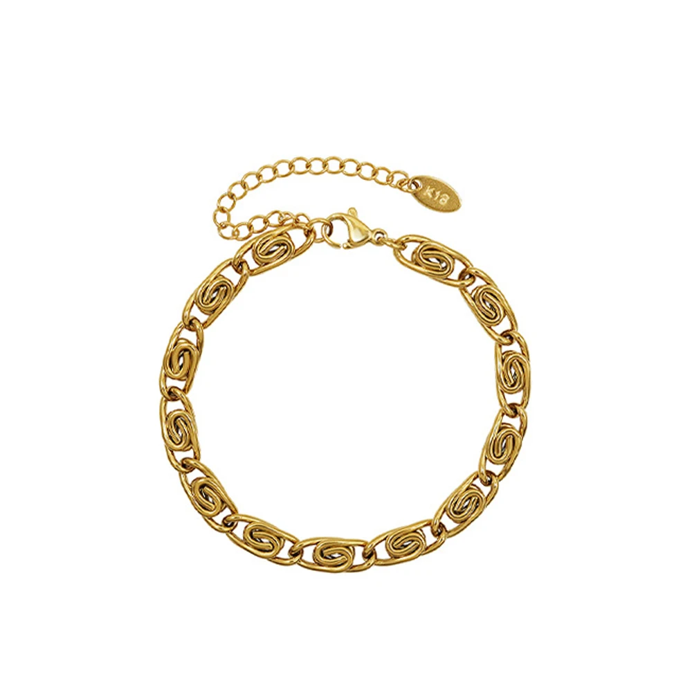 2026 Fashion Stainless Steel Twisted Chunky 21K Gold Plated Spiral Chain Bracelet for Women