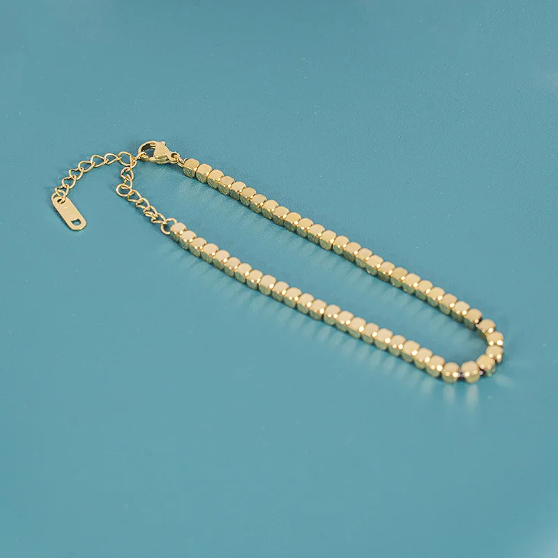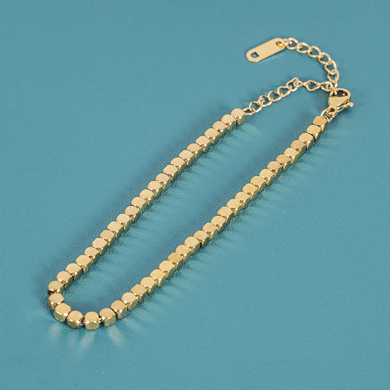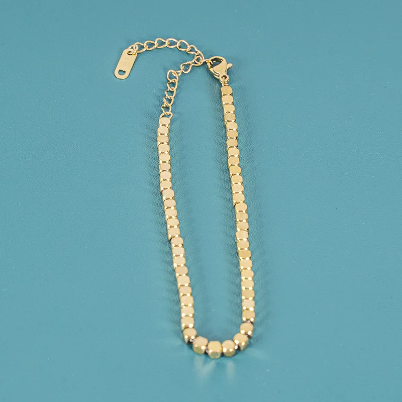 High Quality 18K PVD Plated Round Square Beads Chain Bracelet Water Resistant Stainless Steel Statement Jewelry