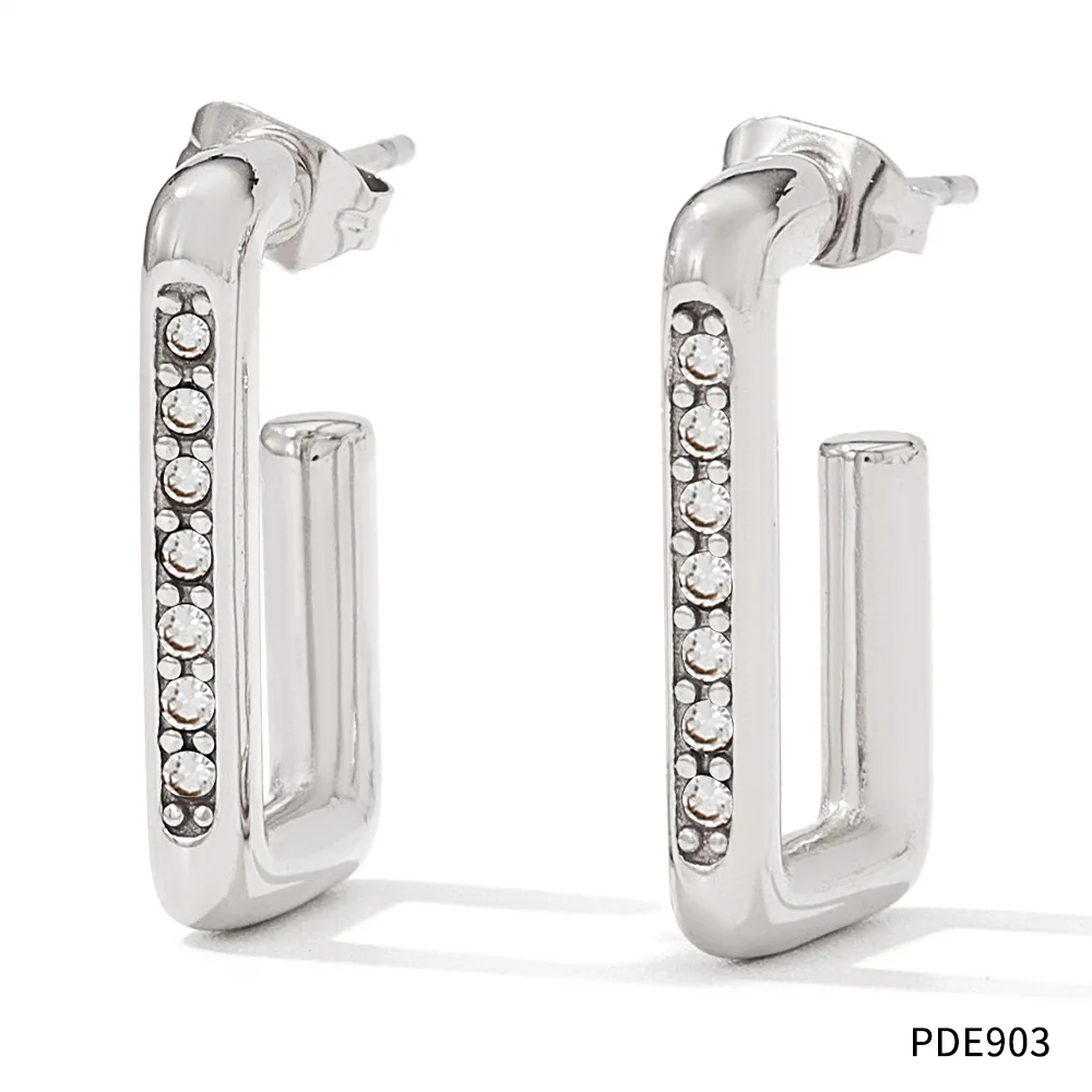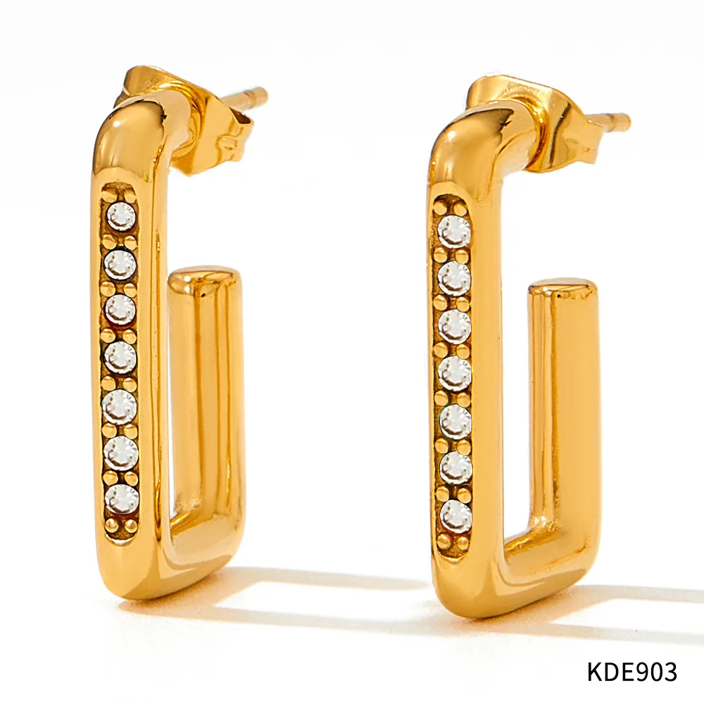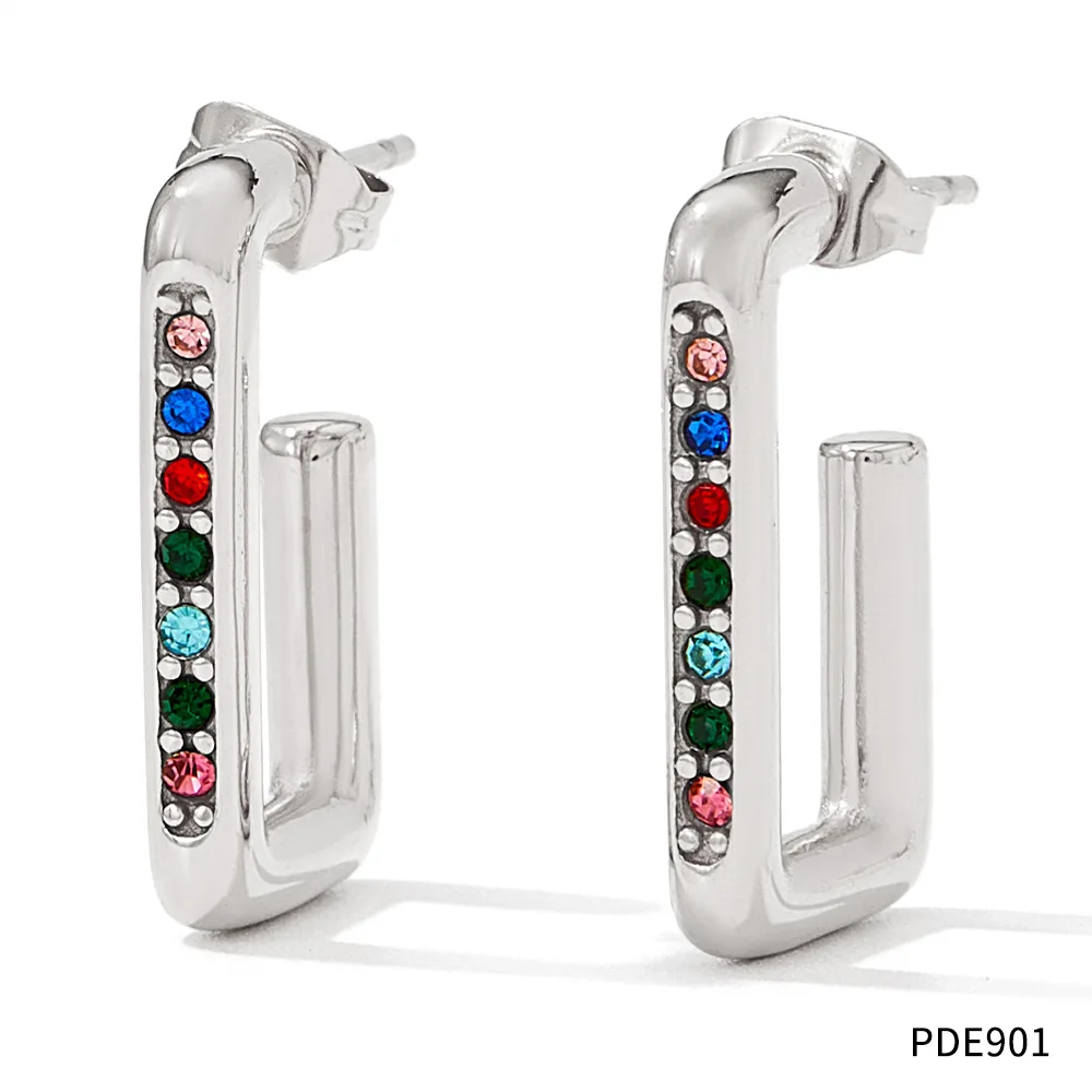 Wholesale Stainless Steel Gold Plated 18k Rectangle Fine Fashion Jewelry Dangle Zircon Earrings for Women