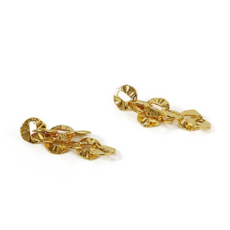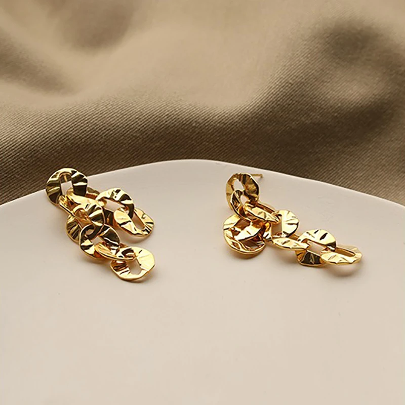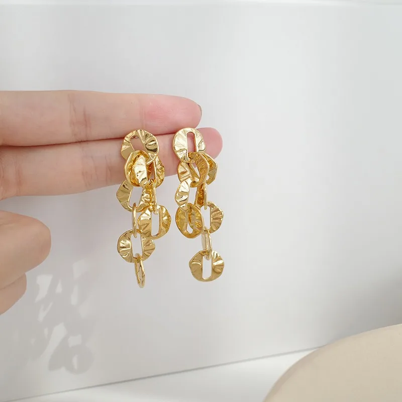 Retention Vacuum Plating Retro Earrings Gold Round Piece Chain Clause Earrings with Silver Post