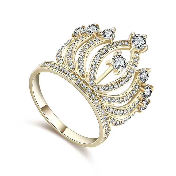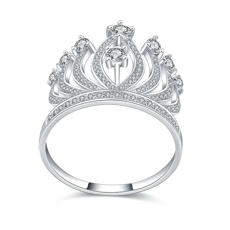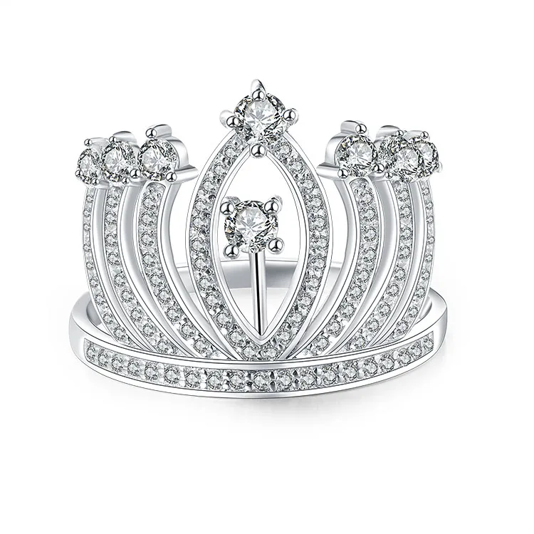 Bamoer Jewelry Women Ring with Cz 925 Sterling Silver Luxury Pure Trendy White CROWN Zircon Thai Silver Silver 18k Gold Jewelry