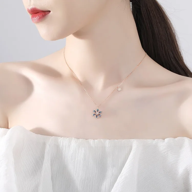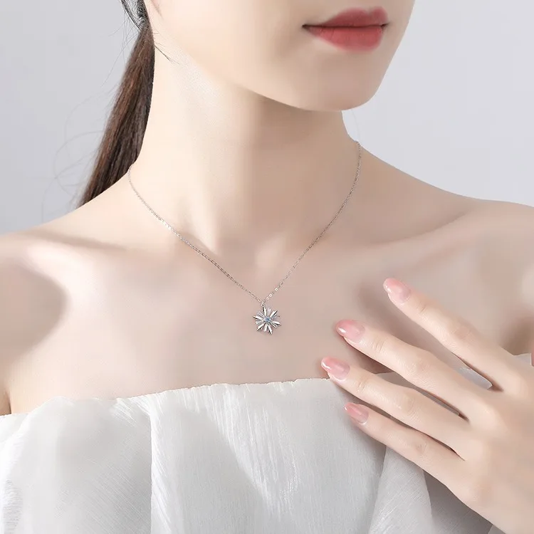 2022 Fashionable Jewelry 925 Sterling Silver Snowflake Necklace Pendant Rotatable Jewelry