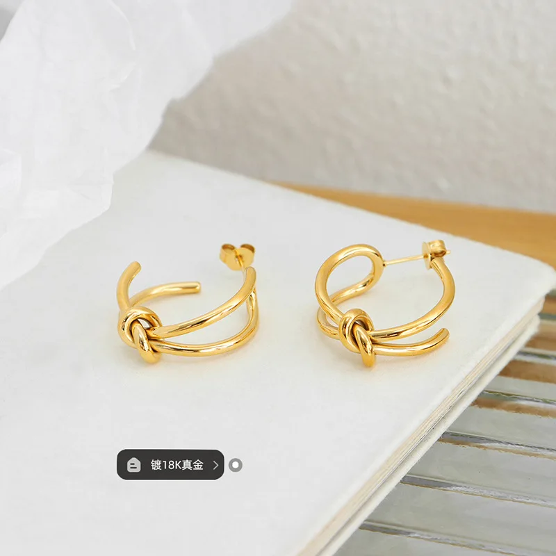 Unique Design Stainless Steel Non Tarnish Personality Knot Hoop Earrings Jewelry Double Layer Earring for Women